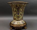 - United Wilson UW 1897 Crackle Hand Painted Floral Bronze & Porcelain Vase 12.75"