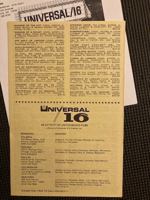 - Universal 16mm 1972 Film Catalog Movie Book with brochures