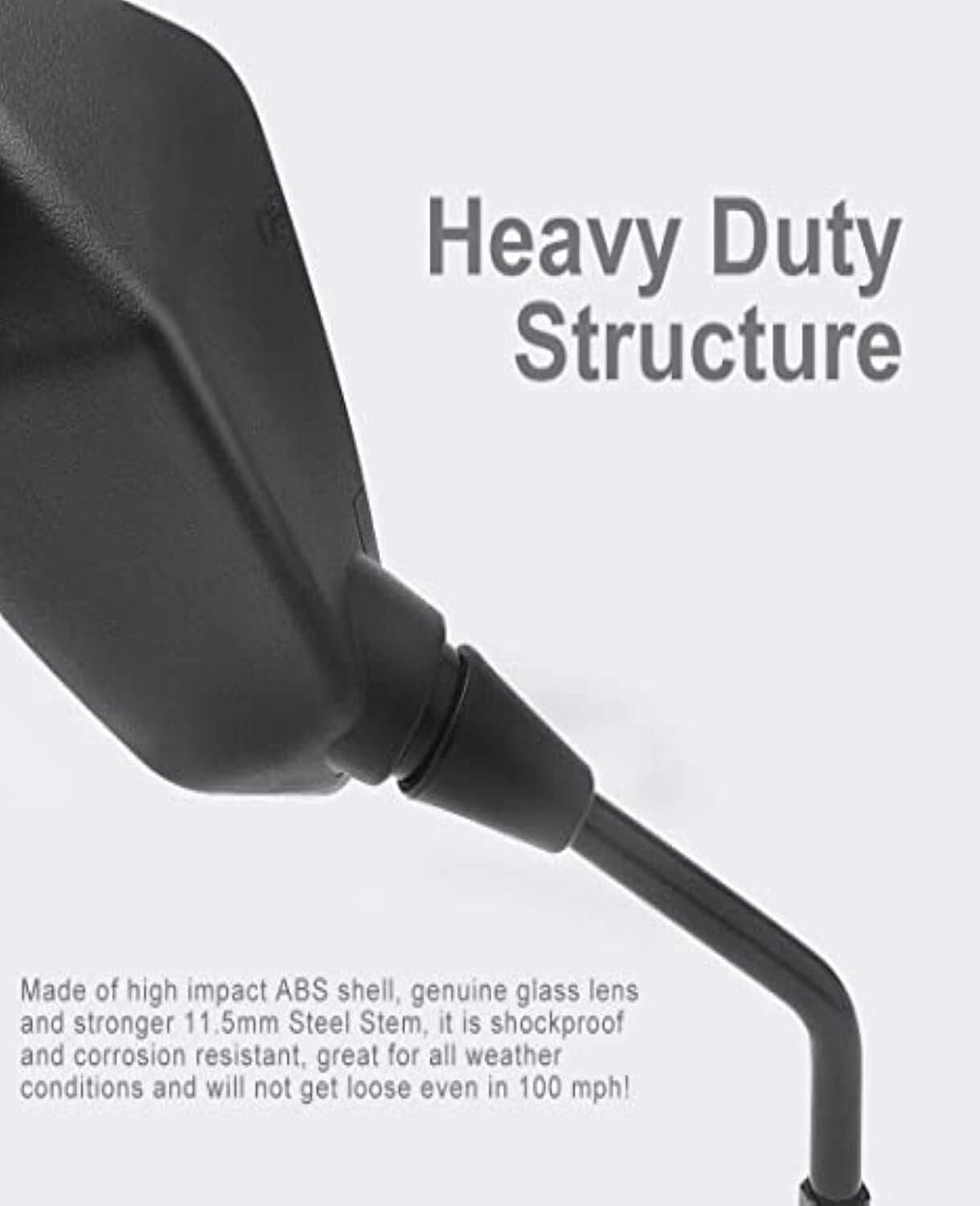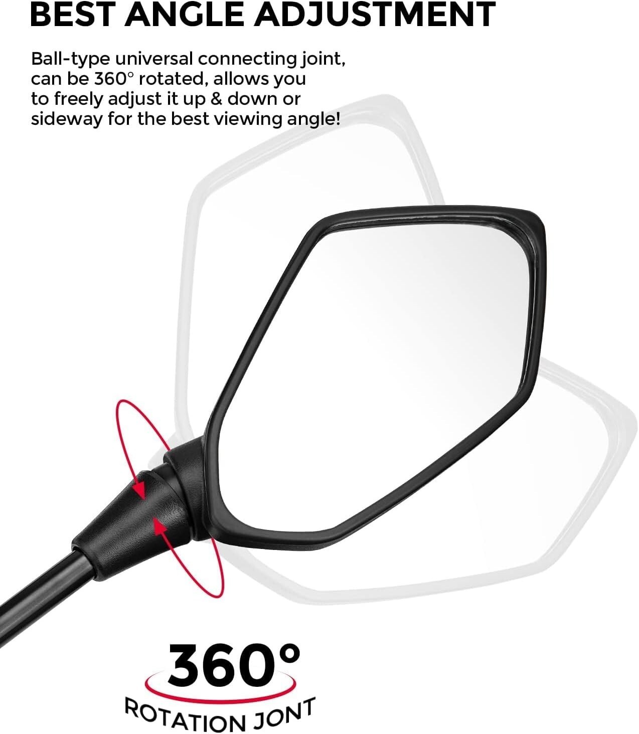 Enhance your riding experience with the KEMIMOTO Black Sportster Mirrors. These versatile mirrors feature 360 rotation and 20 sway adjustment for optimal viewing angles, allowing you to easily monitor upcoming traffic and obstacles without turning your head. Crafted with convex glass lenses, they provide high-definition, wide-angle rearview visibility. Built from durable high-impact ABS with a sleek black finish, these sturdy mirrors are designed for longevity. The stable, stealth-inspired design includes a robust 11.5mm bent stem, reducing vibrations and ensuring steady performance on various bikes. Easy to install with included mounting hardware, these mirrors fit most motorcycles, scooters, ATVs, and sports bikes. For secure attachment, consider using a blue thread locker to prevent vibration or loosening. Mounting brackets are included to simplify installation. Transform your ride with KEMIMOTO ? your journey of dreams starts here! To ensure fast and reliable delivery, we work with multiple fulfillment partners and suppliers. Depending on availability and location, your order may ship from different warehouses or arrive in packaging that varies from item to item. Tracking details are typically provided shortly after shipment, and customer satisfaction remains our top priority.