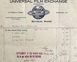 Universal Films Exchange 1915 WW2 Era Invoice Center Theater Maine DWEE38AON