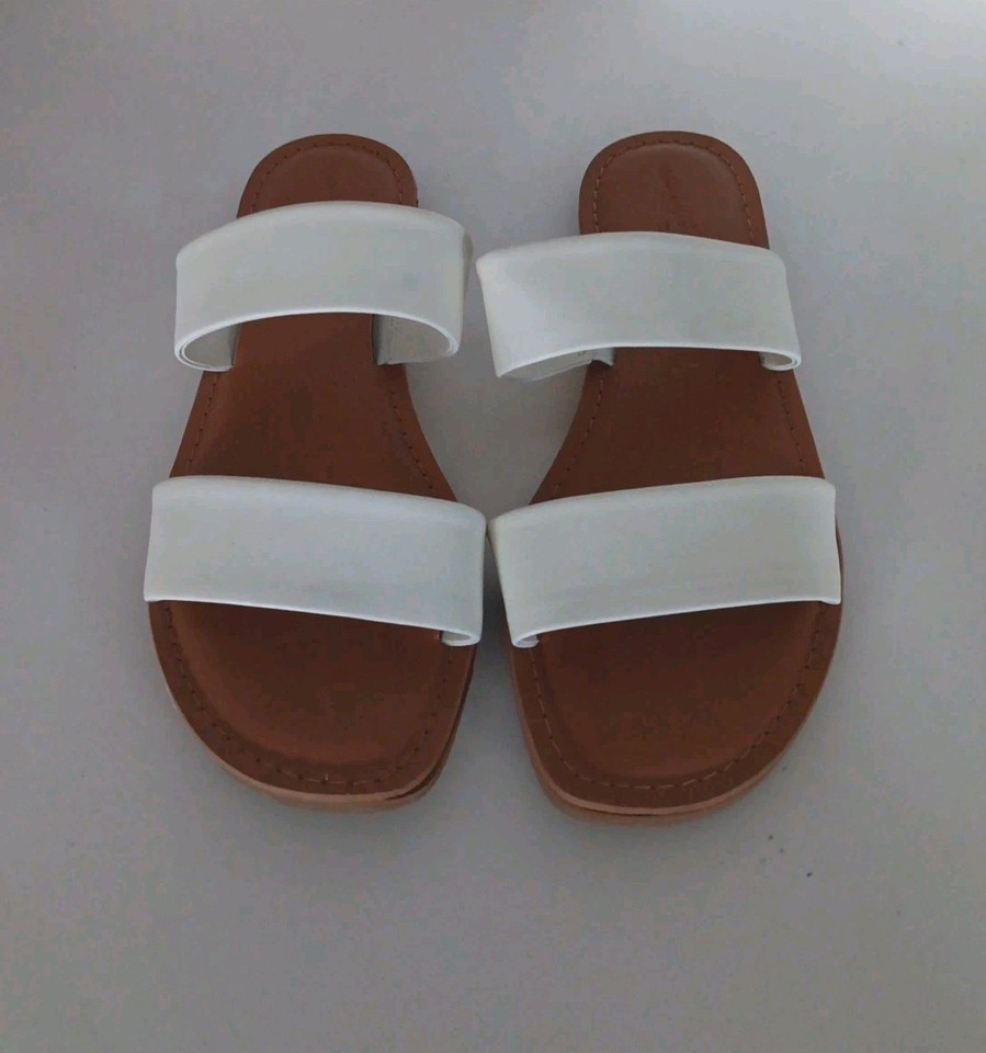 - Universal Thread Women's Sandals Size 7.5 Cream Off White Open Toe Flat Heel