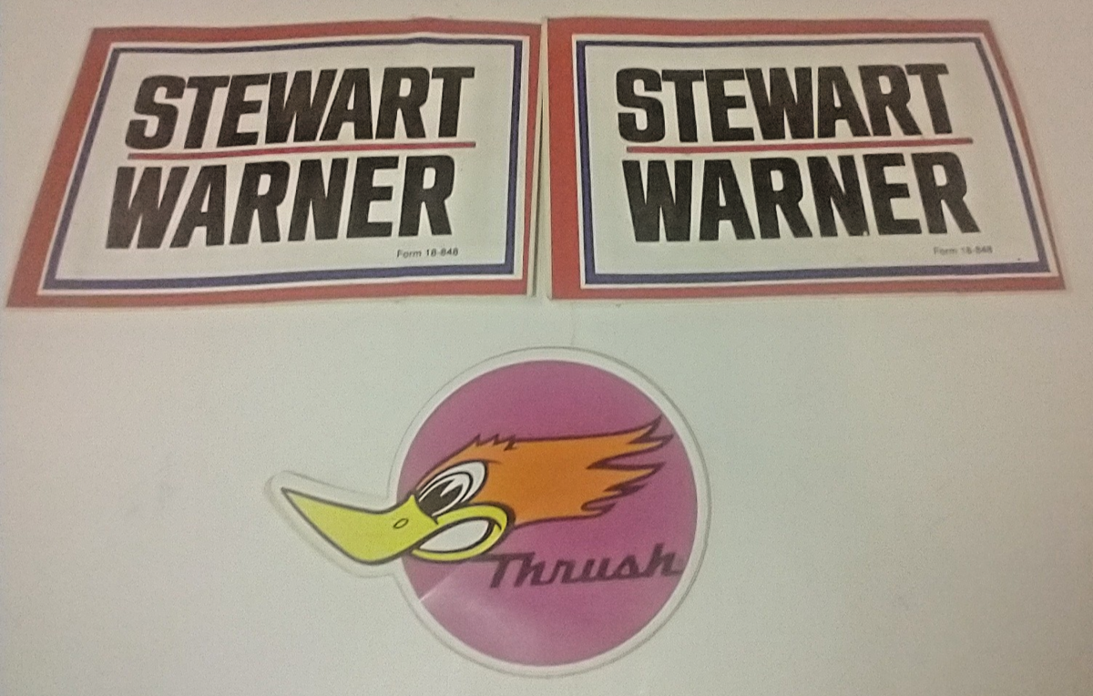 - UNUSED!! VINTAGE! 2X STEWART WARNER & 1 THRUSH STICKERS, FREE SHIPPING US ONLY!!