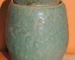 - Unusual Jar / Jarlet 5" Celadon Glaze thin bubble drip lidded Antique barrel