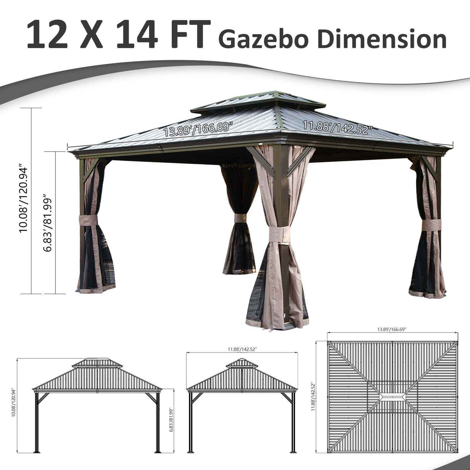 - Upgraded 12'x14' Metal Hardtop Gazebo: Steel Roof, Curtains, Netting