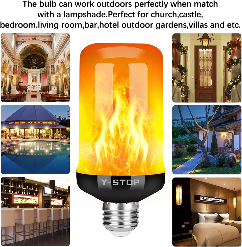 - Upgraded LED Flame Light Bulbs, 4 Modes Flickering Light Bulb with Upside down E