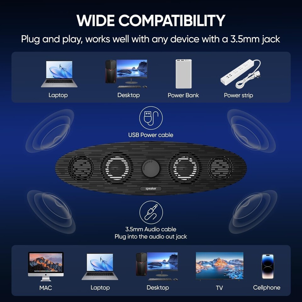 - Upgraded USB Computer /Laptop Speaker with Stereo Sound & Enhanced Bass