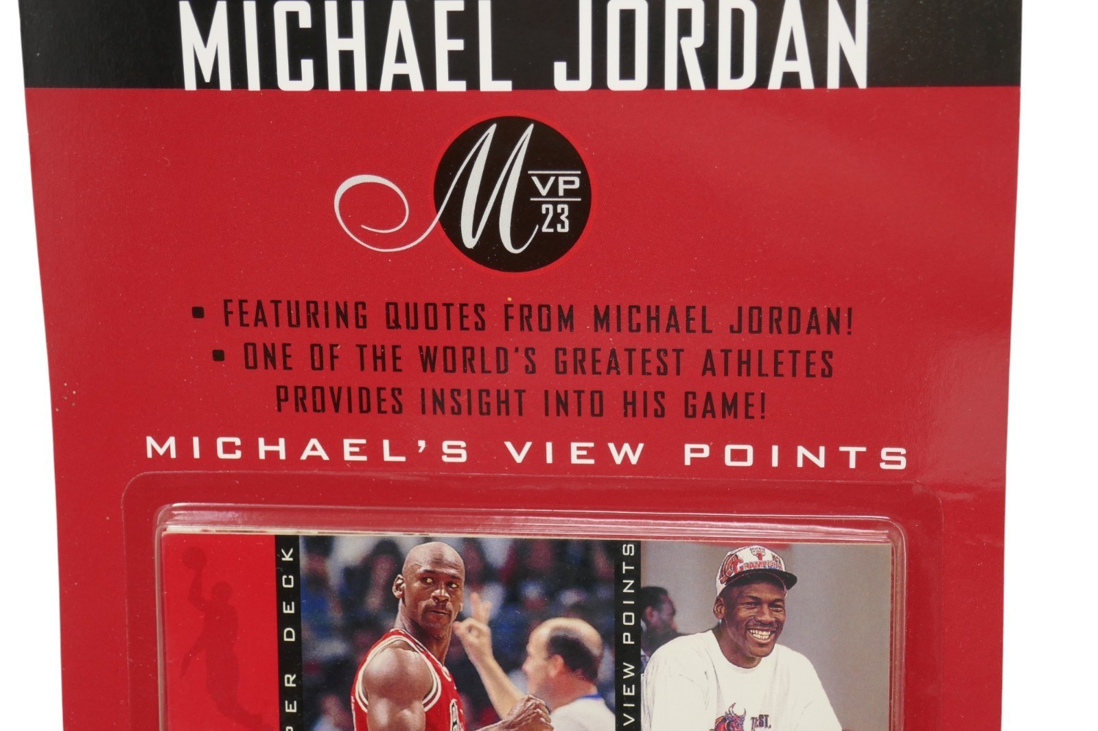 The Upper Deck 1997 Michael Jordan View Points Card Set is a highly sought-after collection for basketball fans and collectors alike. This jumbo-sized set features 10 oversized cards, showcasing the legendary Michael Jordan in his prime with the Chicago Bulls. The cardboard backing has minimal wear.