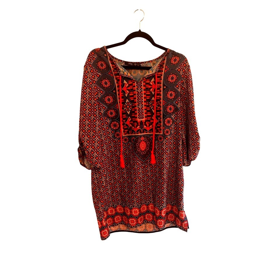 - Urban Coco Womens Medium Boho Tunic Dress Popover Shirt Tassels Floral