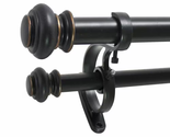 Urn 72 In. - 144 In. Adjustable Double Curtain Rod 1 In. in Antique Black with Finial