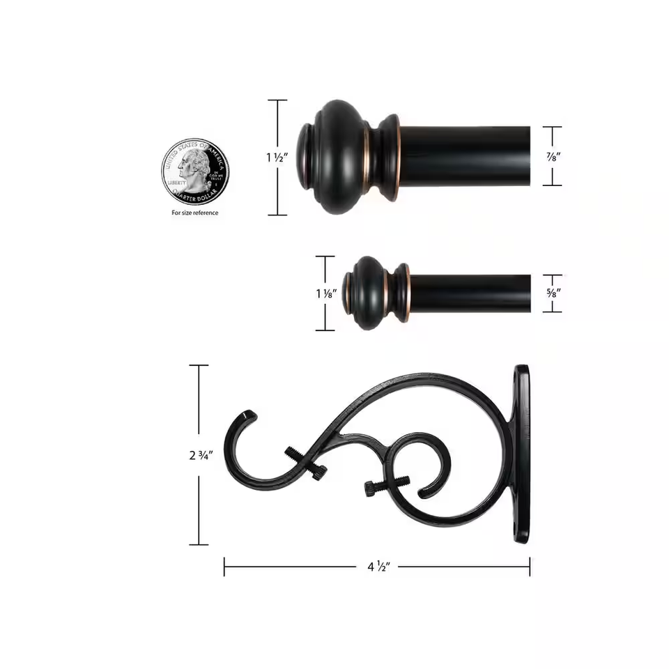 Create gorgeous layered looks with the Northbranch 72 - 144 in. Antique Bronze 7/8 in. Dia Urn Double Rod Set. Functionality and elegance unite with durable construction that ensures long-lasting use and the rich finish complements any room design. Use a sheer curtain on the inside layer for privacy and heavier panels on the outside layer to darken rooms. Upgrade you window with the Northbranch hardware that will never go out of style.