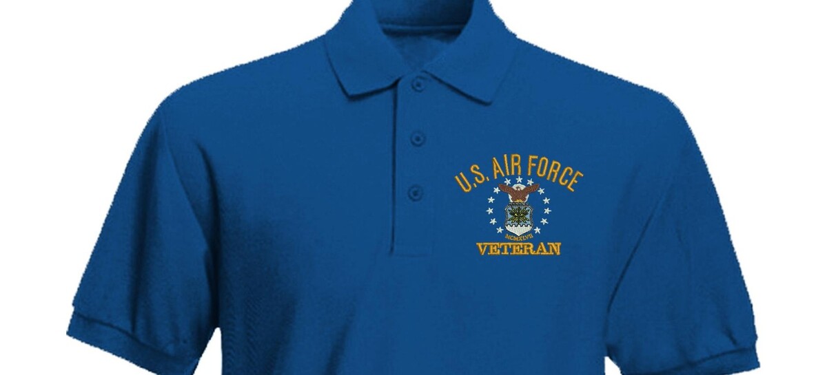 One Men's Long-sleeved Polo Shirt with embroidered US AIR FORCE RETIRED as shown on images
