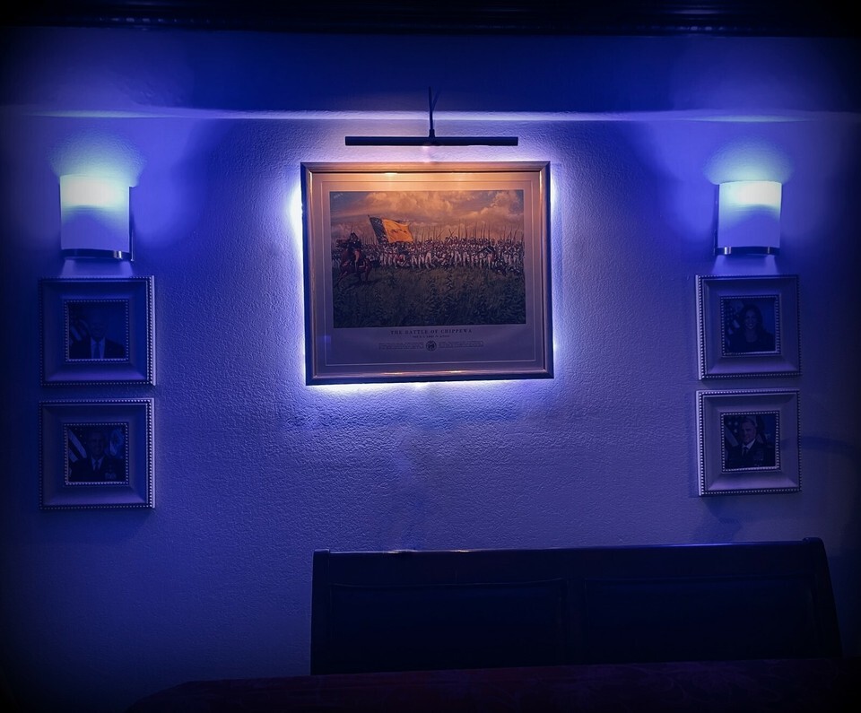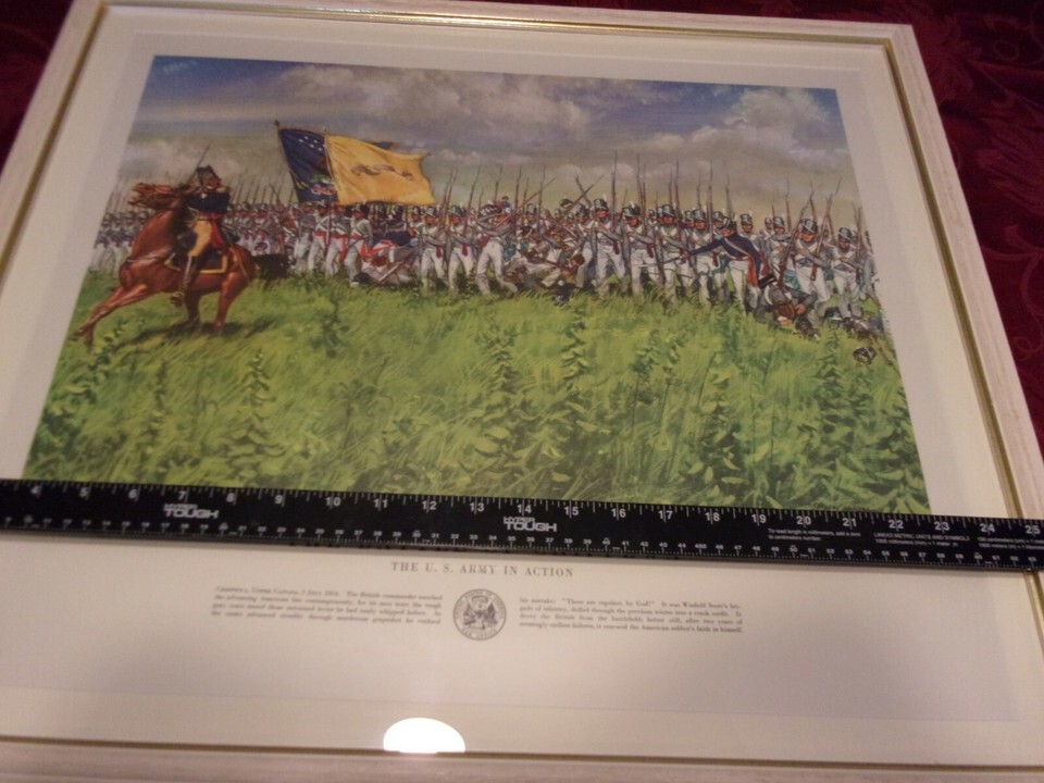 US ARMY BATTLE OF CHIPPEWA PRINT IN WHITE WOODEN FRAME FRAMED IN GLASS 23X26