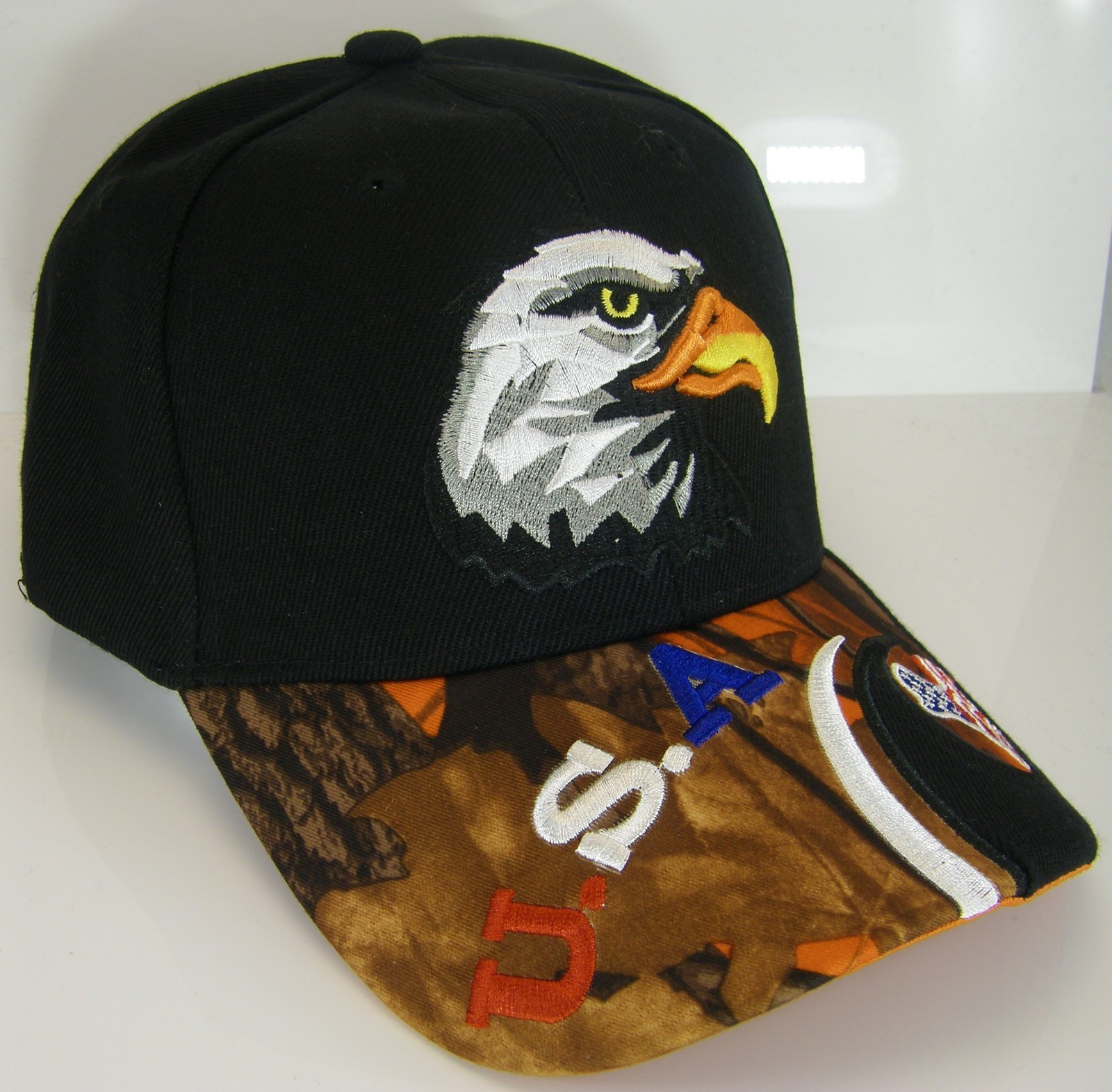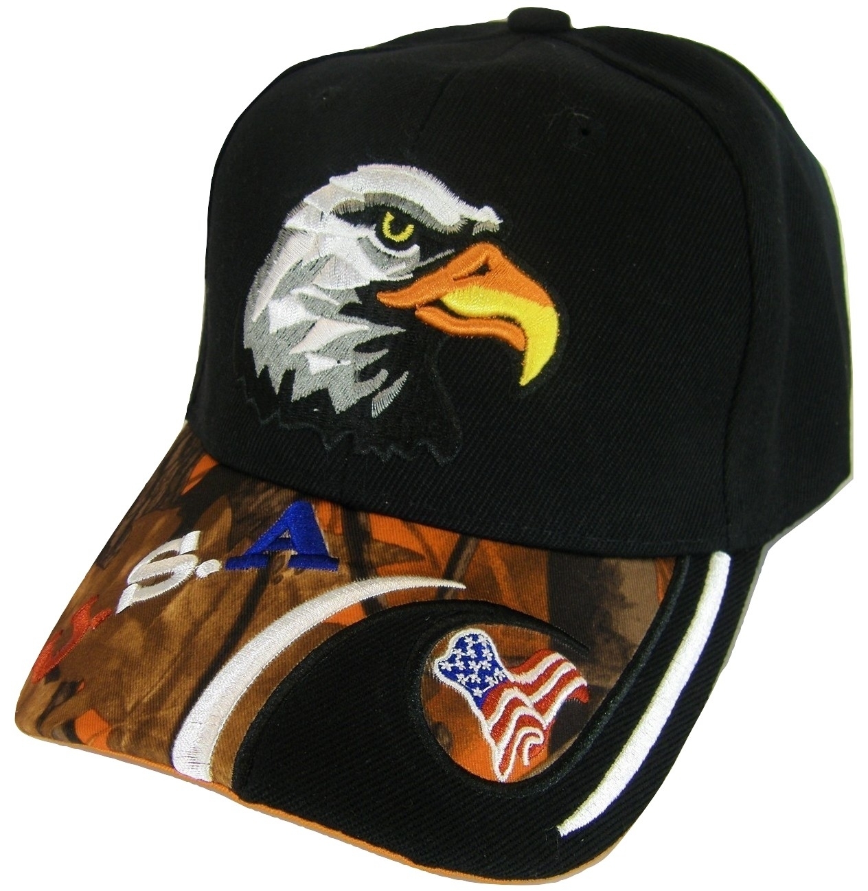 - USA American Bald Eagle Patriotic Adjustable Baseball Cap BLACK/ORANGE CAMO