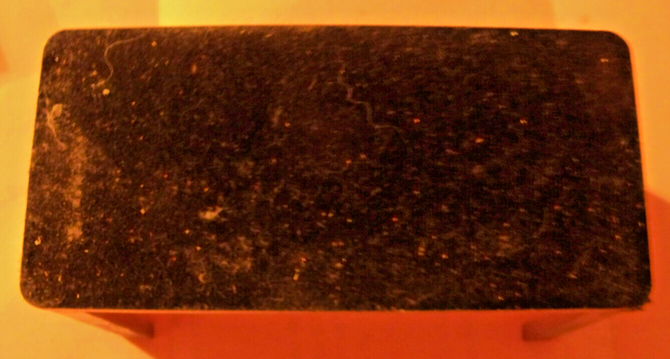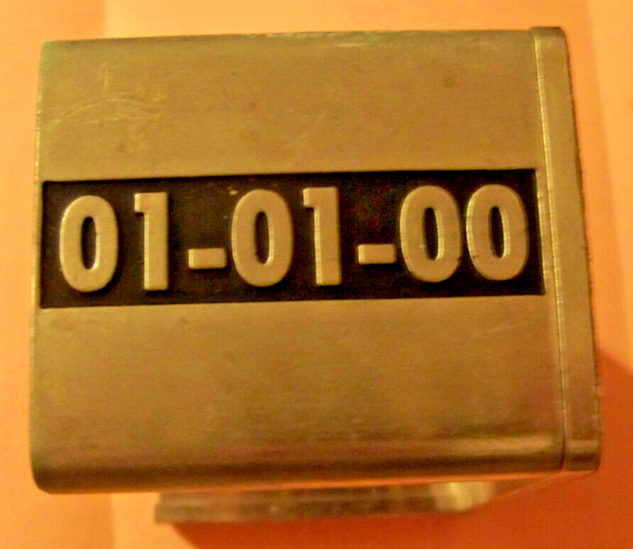 WEIGHS 8.7 OZ. IS NON METALLIC, MAY BE BRASS, SEEMS TOO HEAVY FOR ALUMINUM BUT COULD BE. HAS FELT ON BOTTOM AND SAYS 01-01-00 ON BOTH SIDES. SOLD AS-IS NO RETURN.