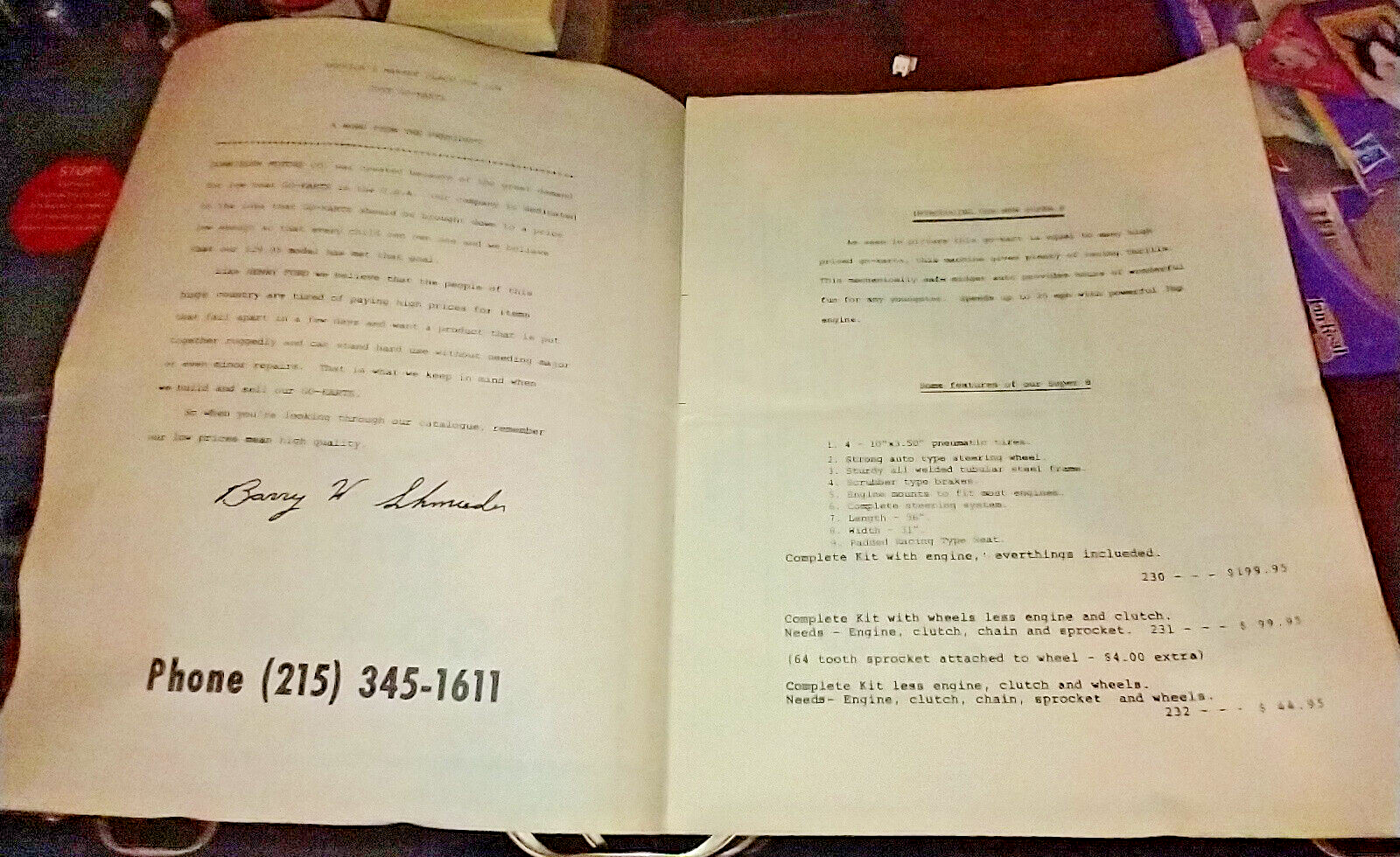 - USED!! 1979 SCHMIEDER WORLD'S LOWEST PRICED GO-KARTS AD, FREE SHIPPING US ONLY!!