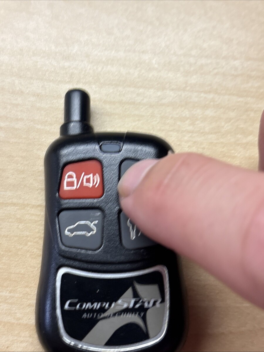 USED COMPUSTAR 4-BUTTON REMOTE ALARM FOB TRANSMITTER O44JR1600 1WAMR-1600. Comes with new battery