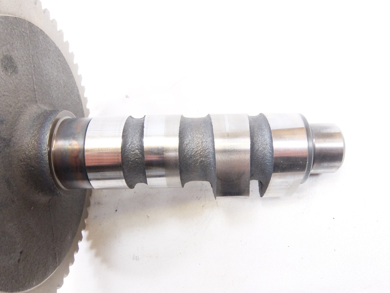 This is a used genuine Kohler camshaft that was removed from the mower below. This offer includes the washer that was on the one end of the camshaft. The lobes on the camshaft show some shiny streaks but do not seem to be worn.