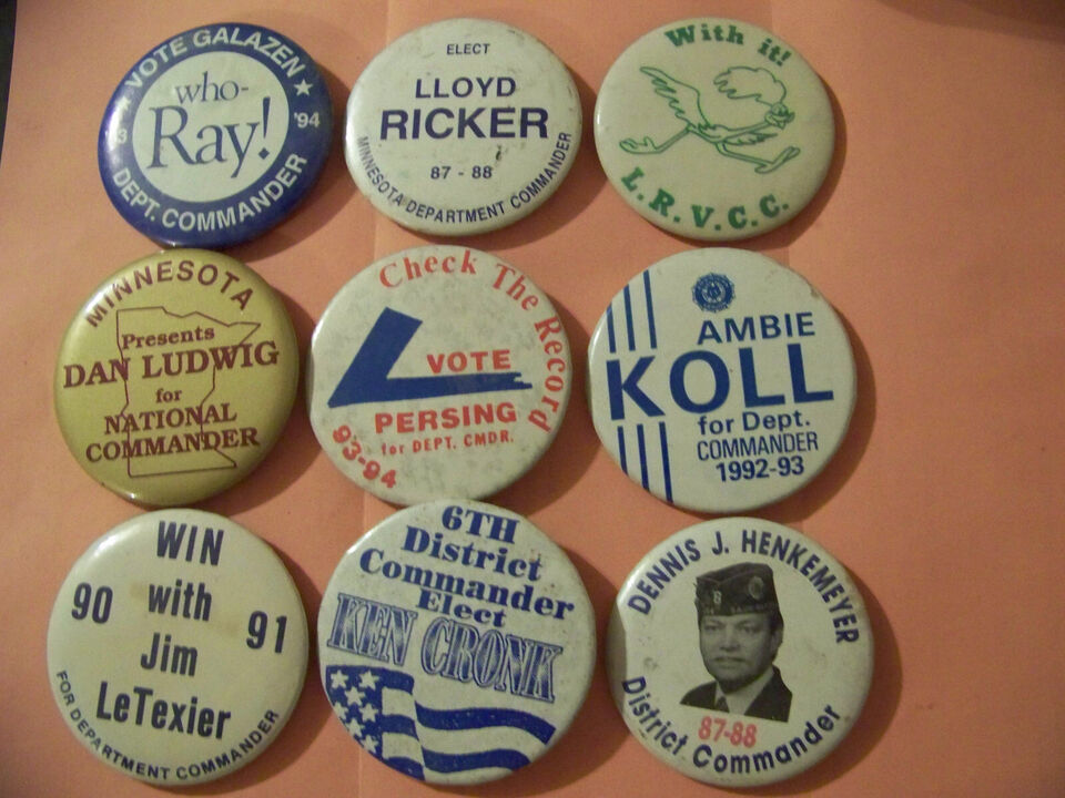 USED!! LOT OF 9 LARGER COMMANDER PINS, FREE SHIPPING!!