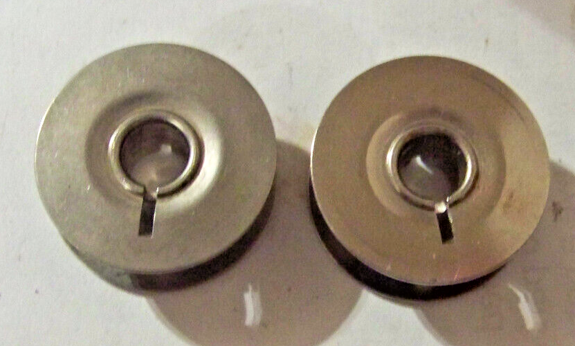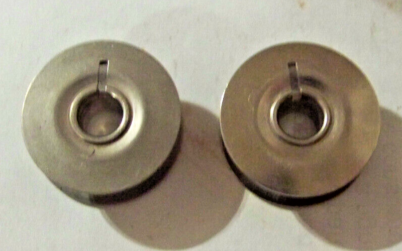 STEEL BOBBINS, ABOUT 7/8" ACROSS BY 5/16" HIGH. .25" HOLE. SOLD AS-IS NO RETURN.