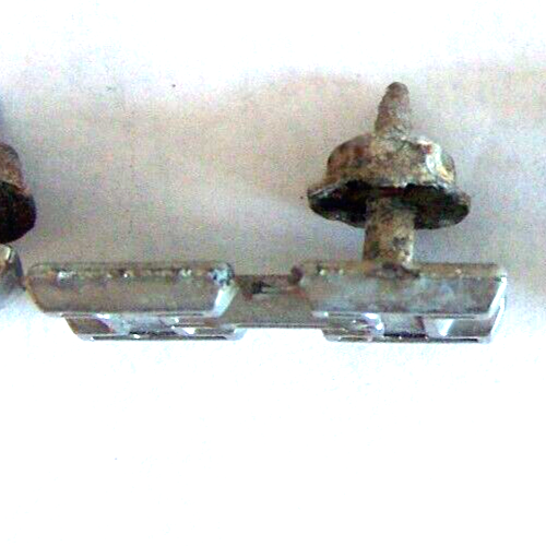 “HAS PITS, NICKS, GRIME, MISSING ONE PEG (BROKE OFF) & COROISSION.” |