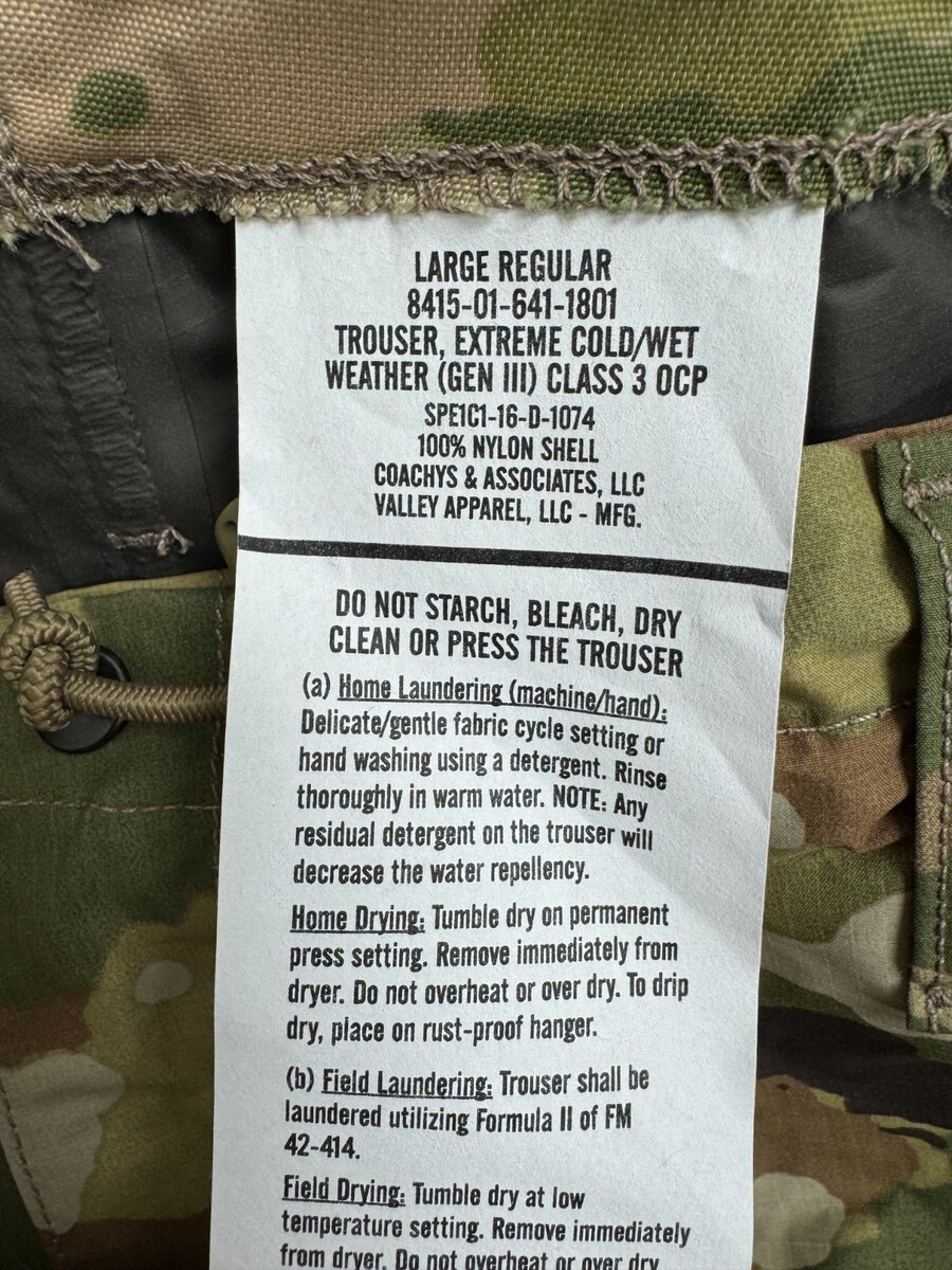 - USGI ECWCS MULTICAM GEN III LEVEL 6 EXTREME COLD/WET WEATHER PANTS LARGE REGULAR