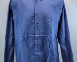 V) Men Express 1MX Blue Grid Slim Stretch Button Up Dress Shirt Large