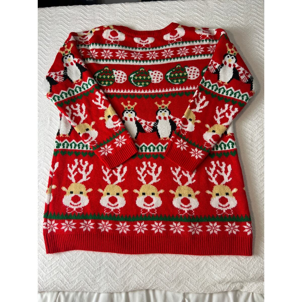- V28 Christmas Sweater Women’s XL Red Penguin Reindeer Holiday Knit