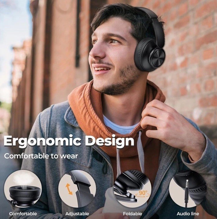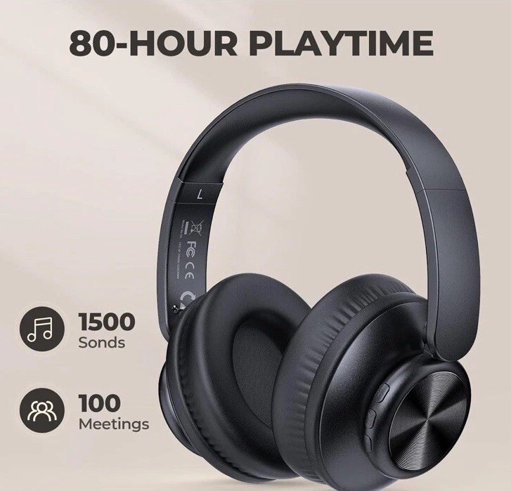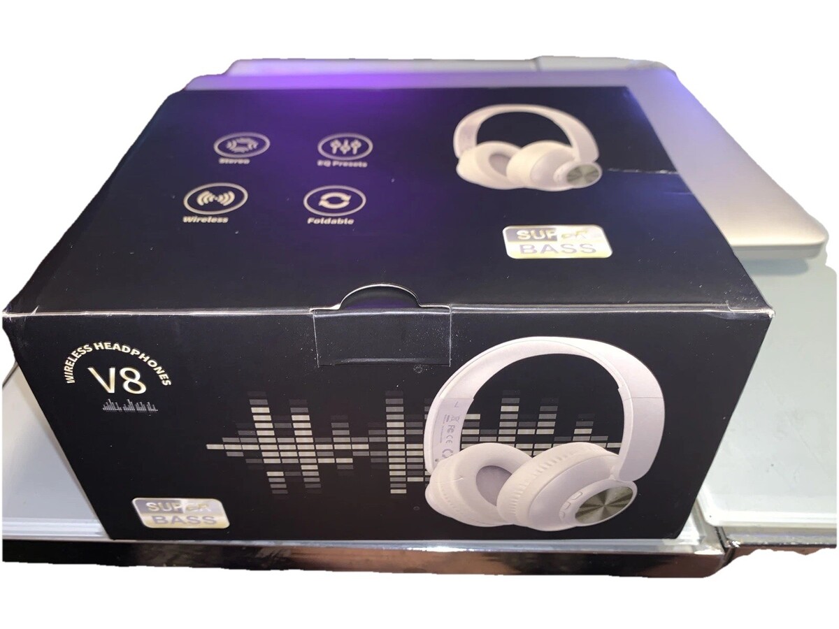 - V8 Wireless Bluetooth Headphones Over Ear, 80 Hours Playtime Wireless White