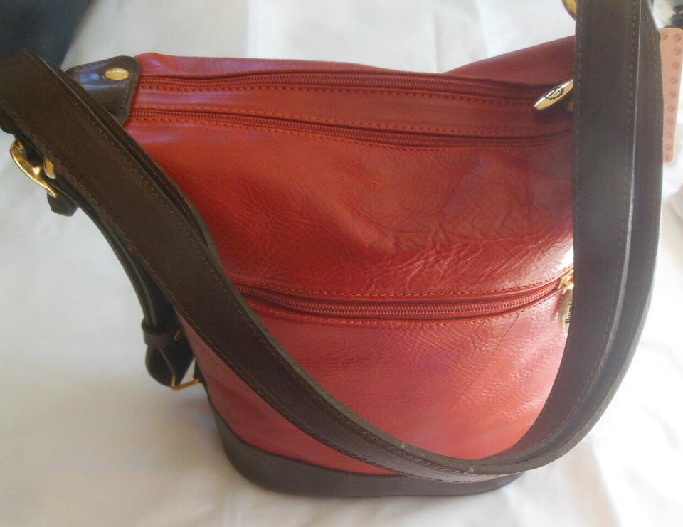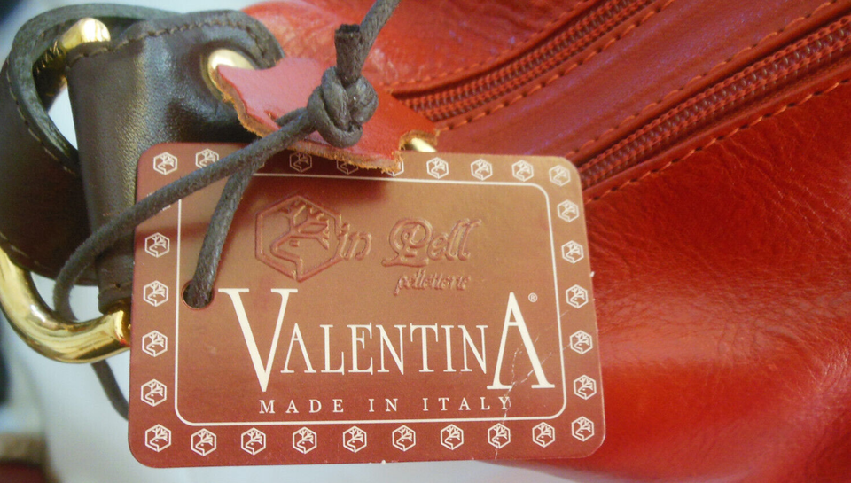- VALENTINA Genuine Red/Brown Leather Handbag Made in Italy