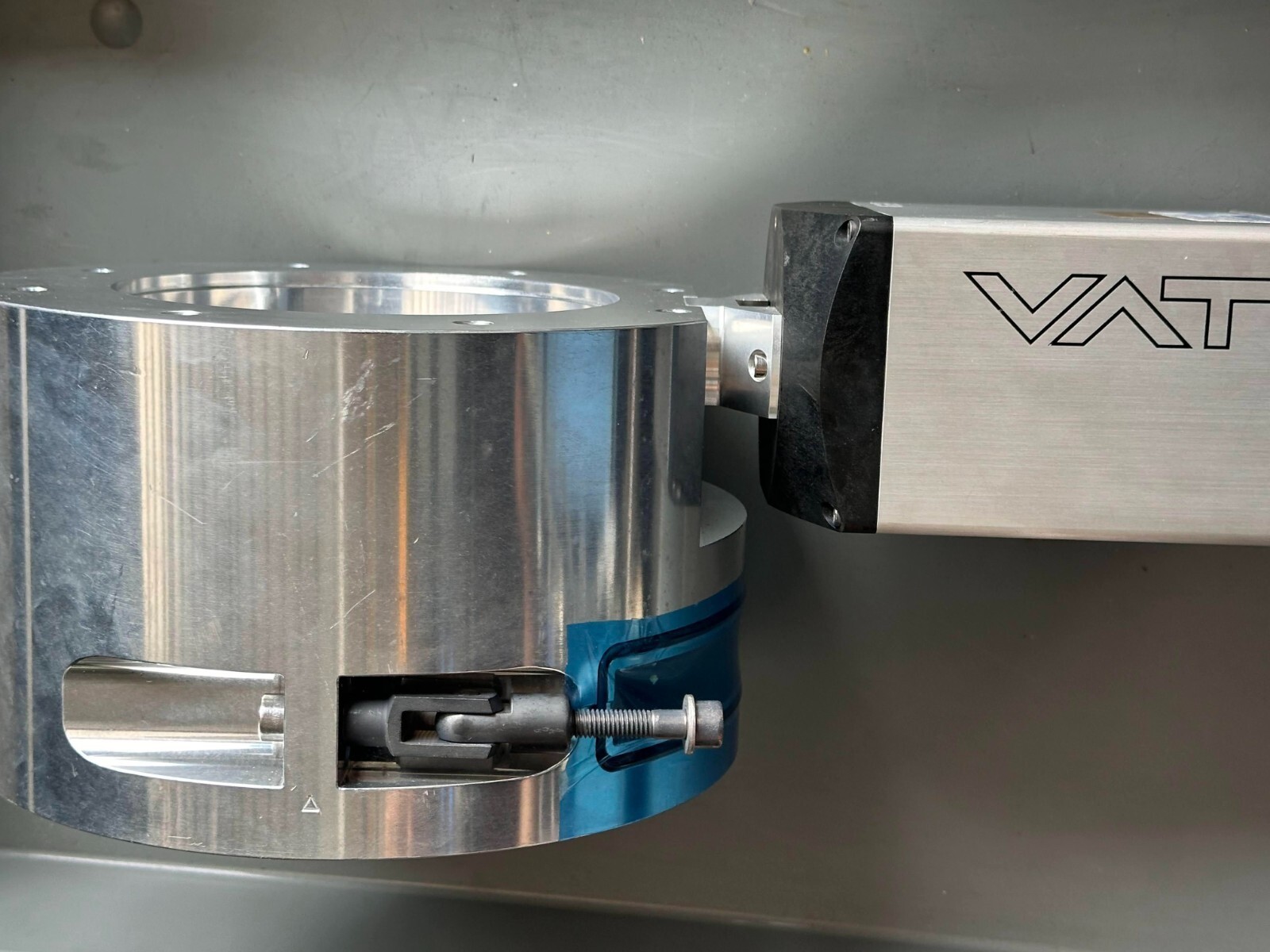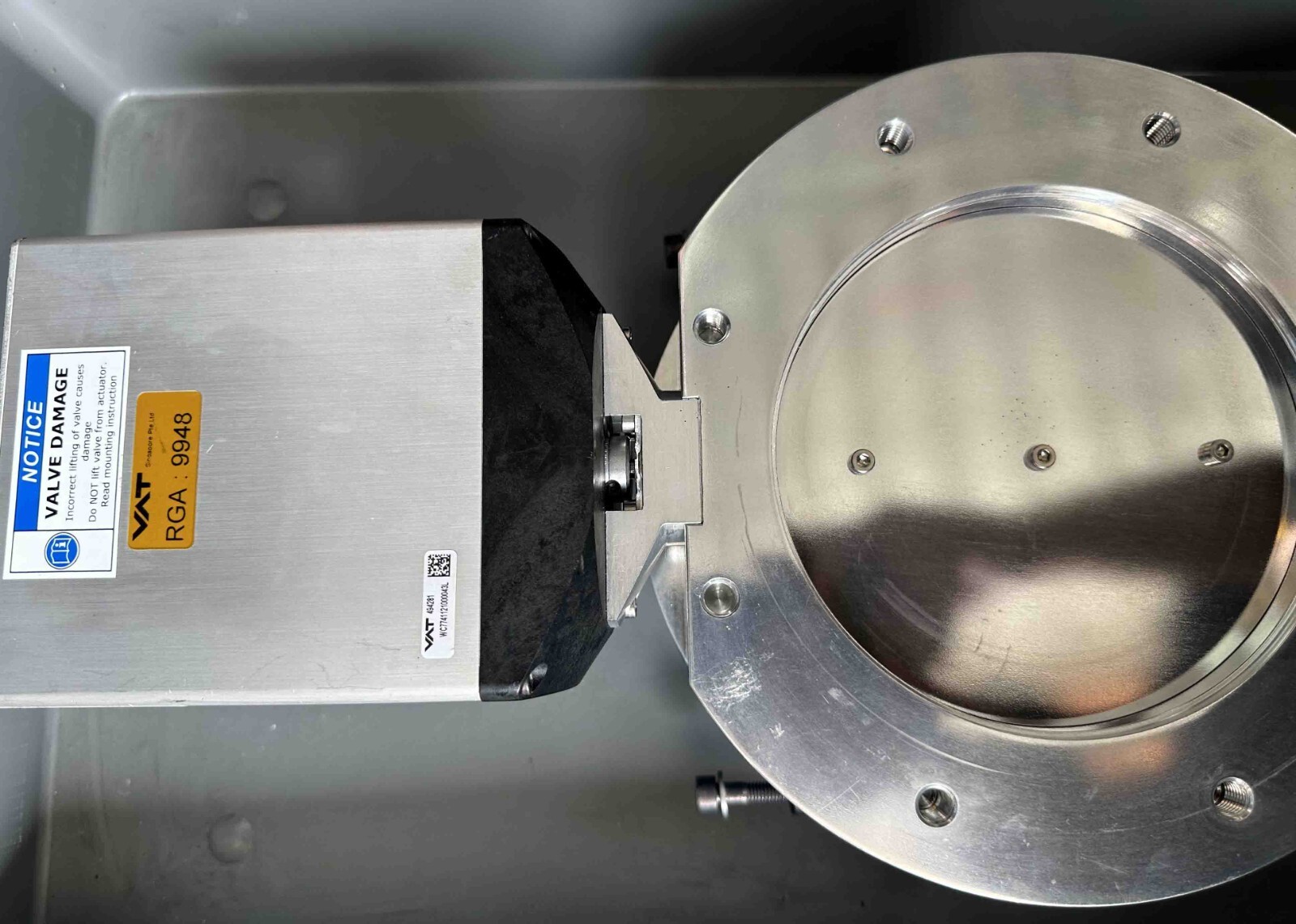 with a gate valve. It offers precise pressure control and leak-tight isolation for applications like vacuum chambers,