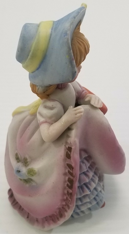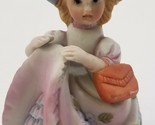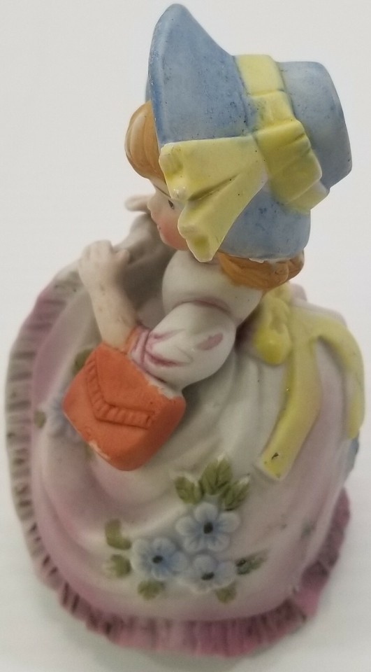 VC) Vintage Girl with Dress and Hat Ceramic Figurine Statue 4.5" Tall