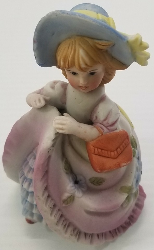 - VC) Vintage Girl with Dress and Hat Ceramic Figurine Statue 4.5" Tall