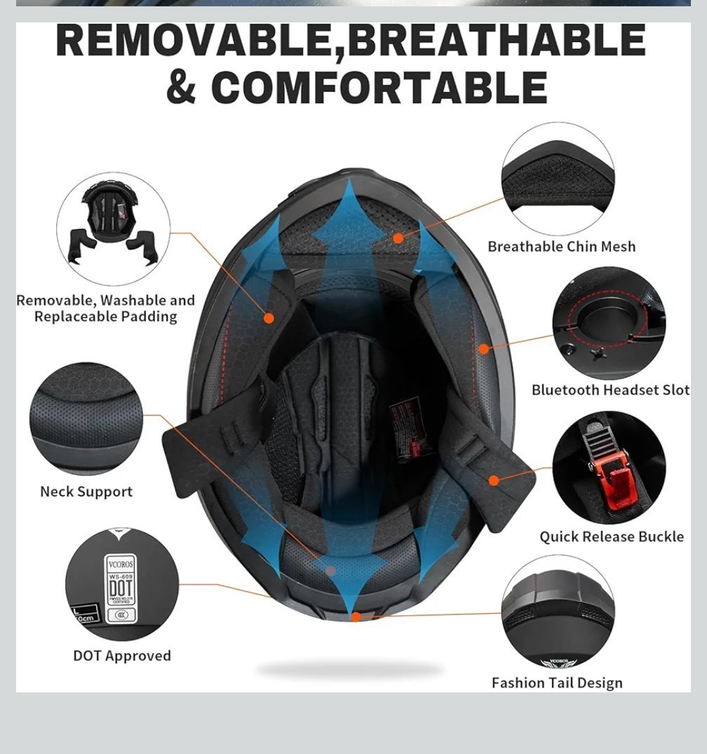 - VCOROS Motorcycle Full Face Helmet Sz XL for Unisex-Adults DOT Approved WS-609