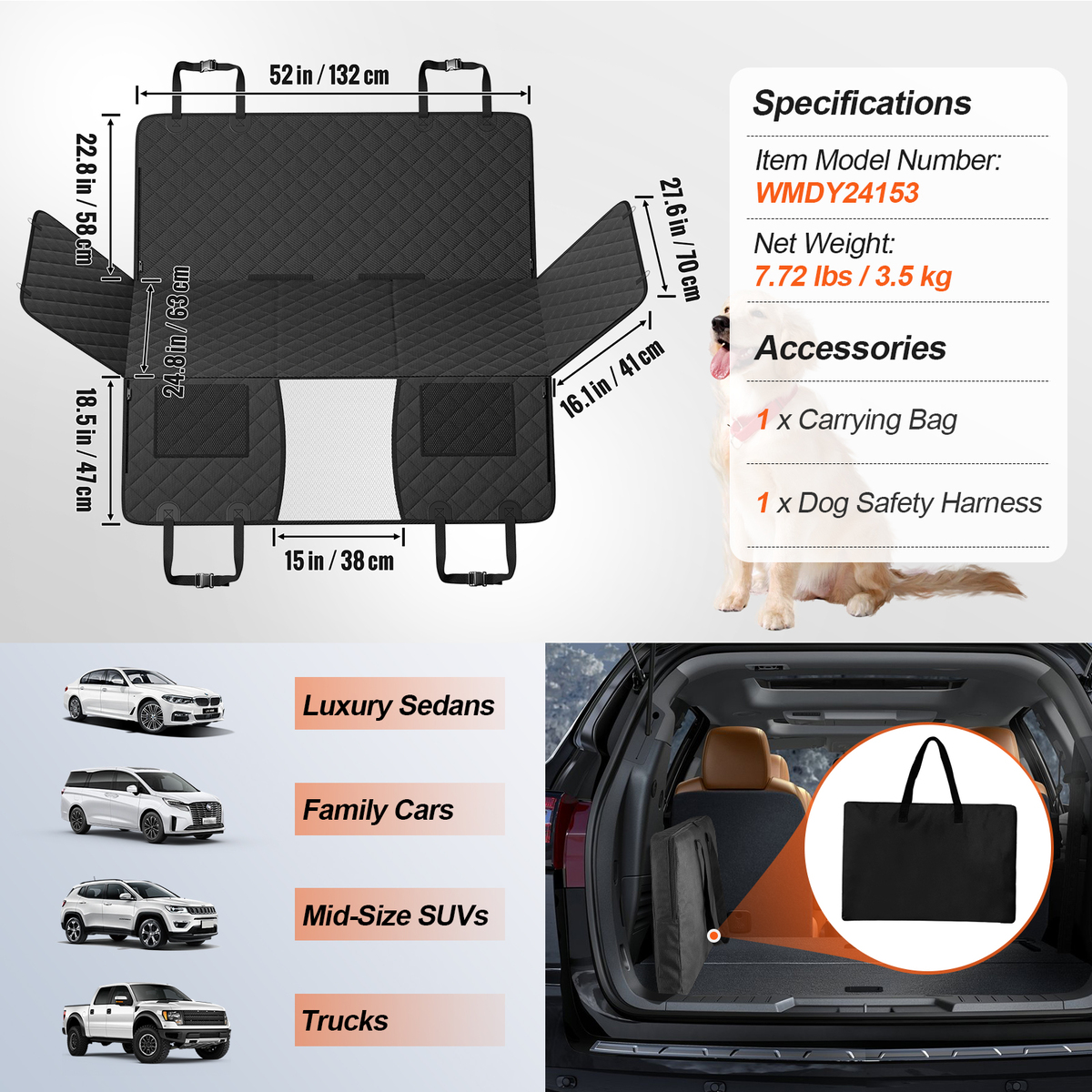 - VEVOR 52 x 24.8 in Dog Car Seat Cover for Back Seat Waterproof 600D for Cars