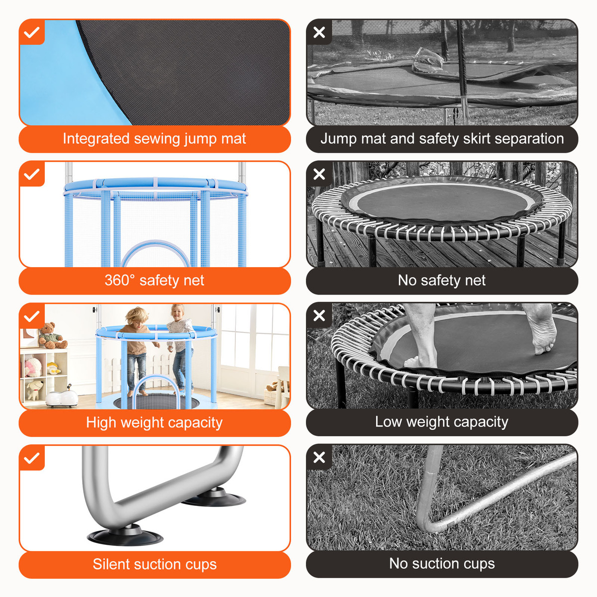 - VEVOR 55" Kids Trampoline, 4.6FT Trampoline, with Safety Enclosure Net, Blue