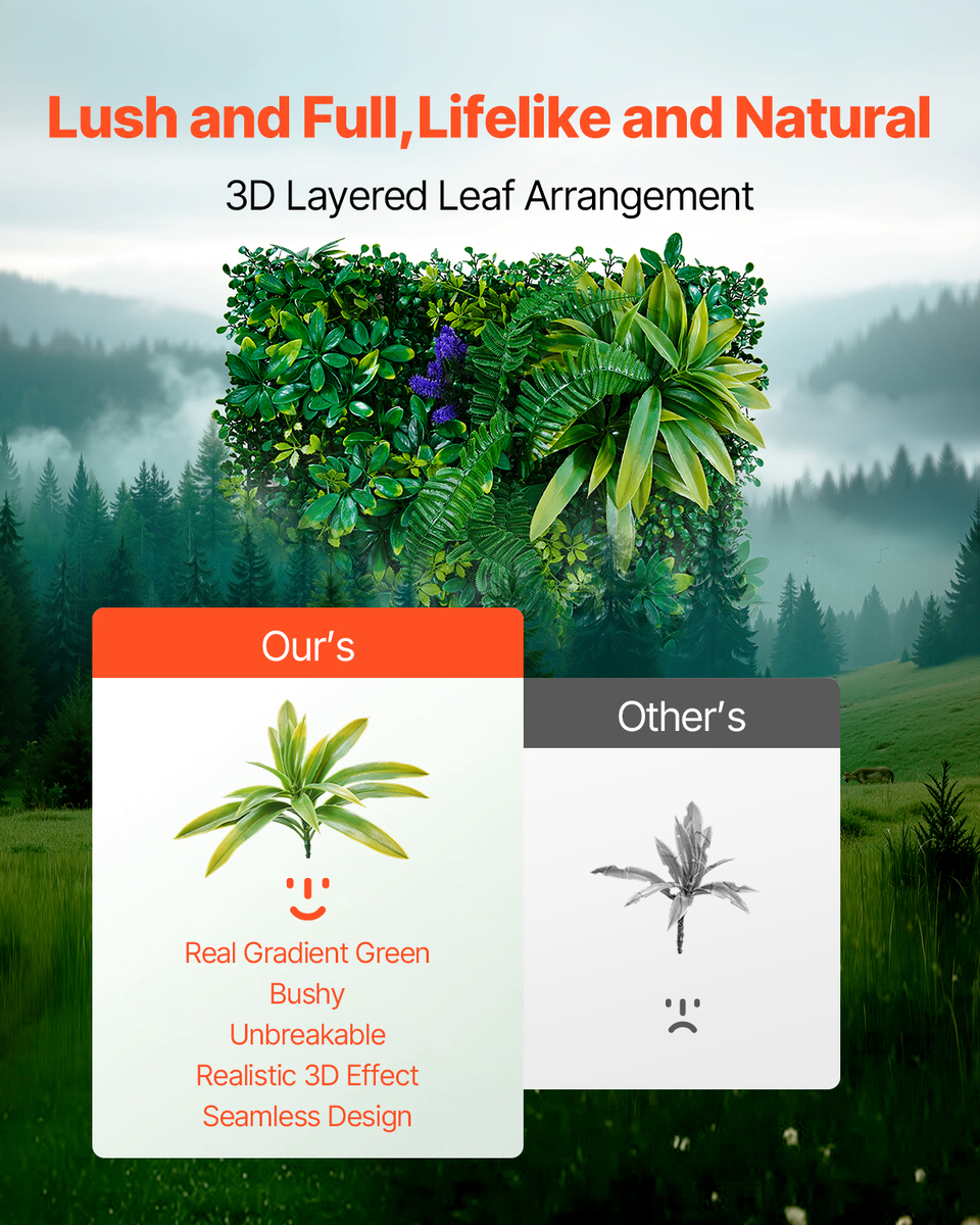 Versatile for Multiple Scenarios: Suitable for both indoor and outdoor spaces, this plant wall can be used to decorate your balcony, patio, garden, or interior walls. It’s also a perfect choice for seasonal celebrations, allowing you to enhance holiday backdrops or event spaces