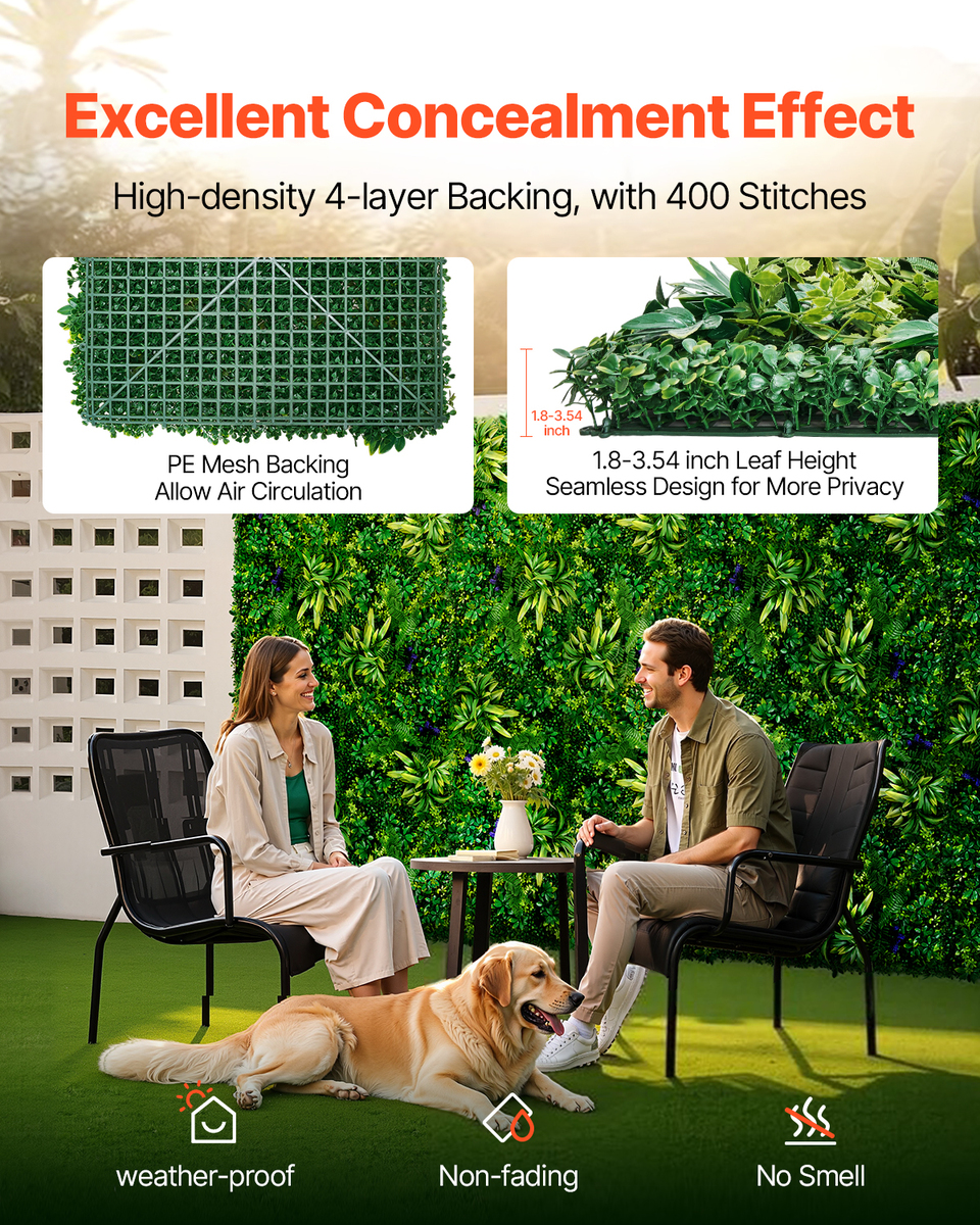 Enhanced Privacy Coverage: Featuring a four-layer backing and leaf heights ranging from 1.8 to 3.54 inches, the dense, layered design ensures no gaps, creating a natural and seamless look. Once installed, it provides excellent coverage for enhanced privacy