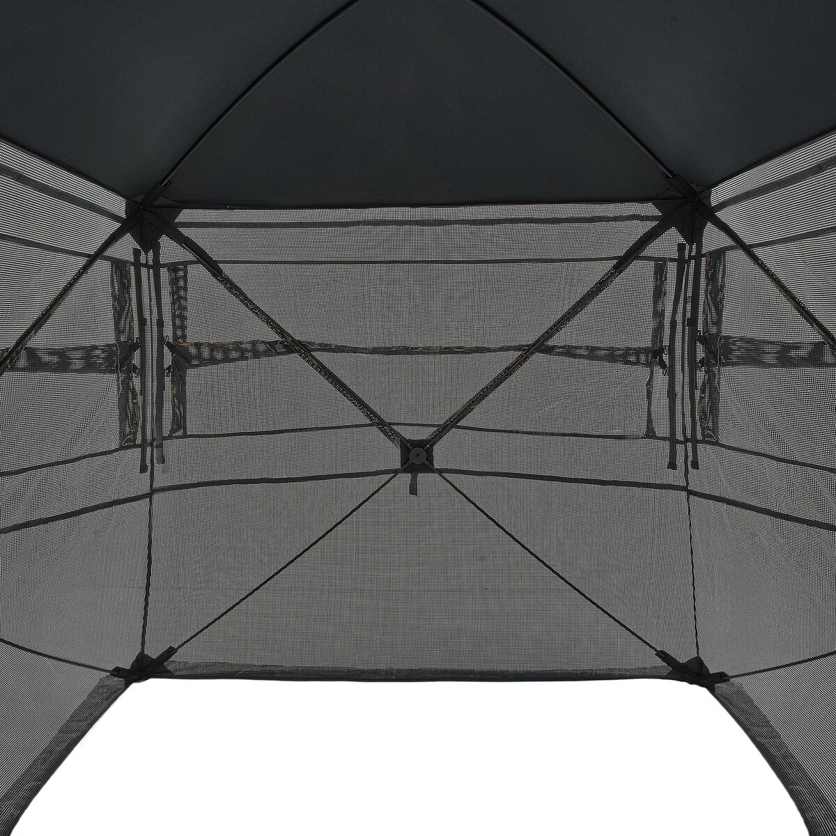 Silent Hunting Upgrade: The hunting blind uses a silent method with an internal sewn steel bar structure. The door is lockable and zippered, featuring automatic closure. The windows and silent slide rails offers a 270 wide view for easy tracking