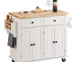 VEVOR Kitchen Island Cart with Solid Wood Top, 35.4" Width Mobile Carts, White