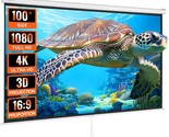 - VEVOR Manual Projector Screen, 100 inch 16:9 4K 1080 HD Retractable Pull Down Pr