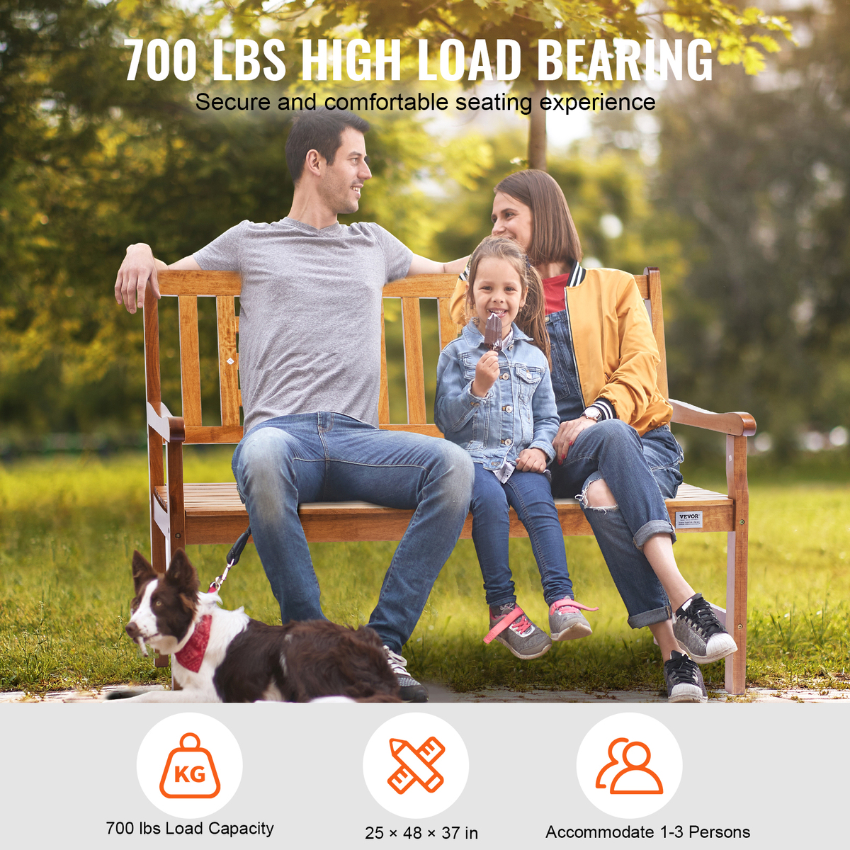 - VEVOR Outdoor Bench, 48 inches Wood Garden Bench, 700 lbs Load Capacity Bench