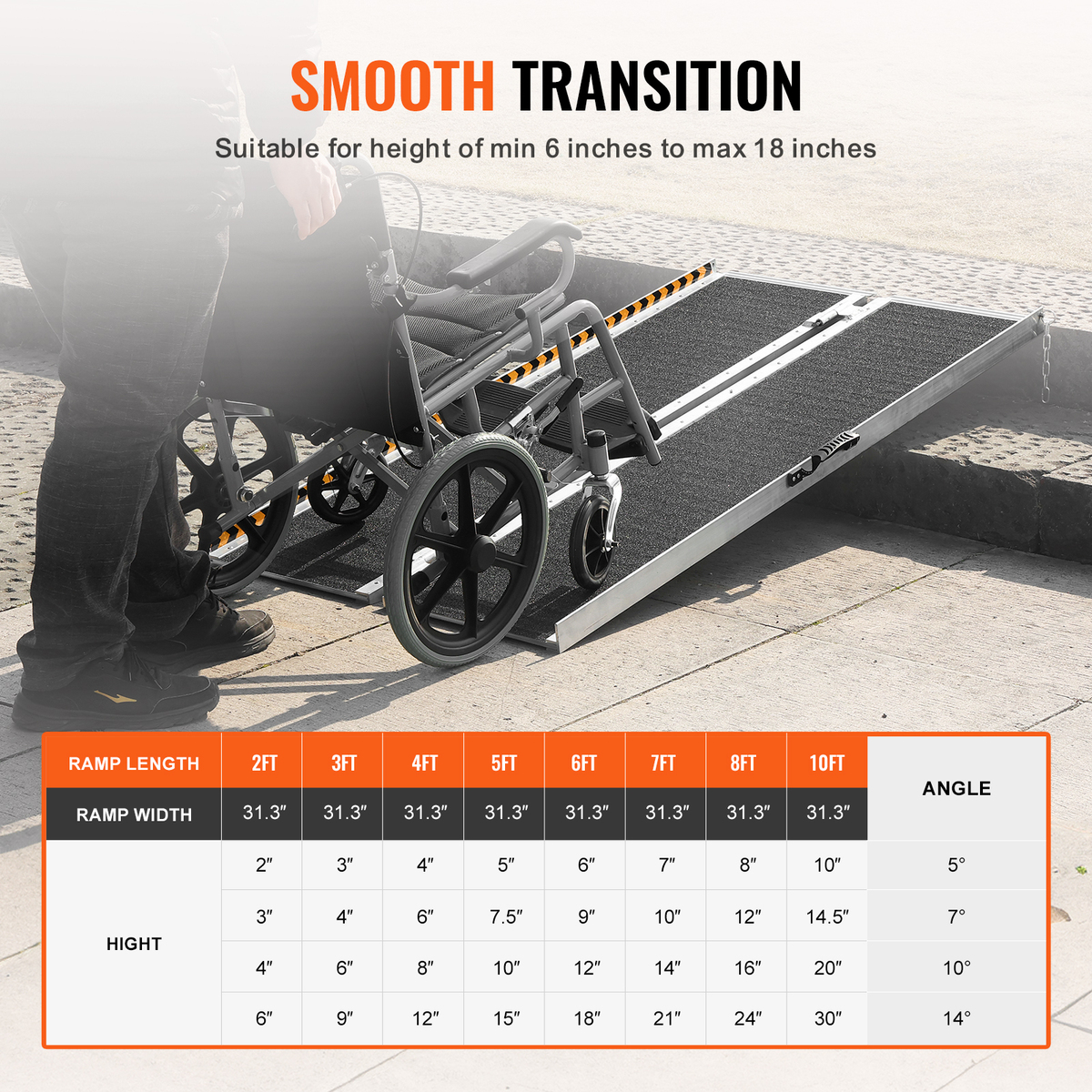 - VEVOR Portable Wheelchair Ramp, 6 ft 800 lbs Capacity, Non-Slip Aluminum Folding