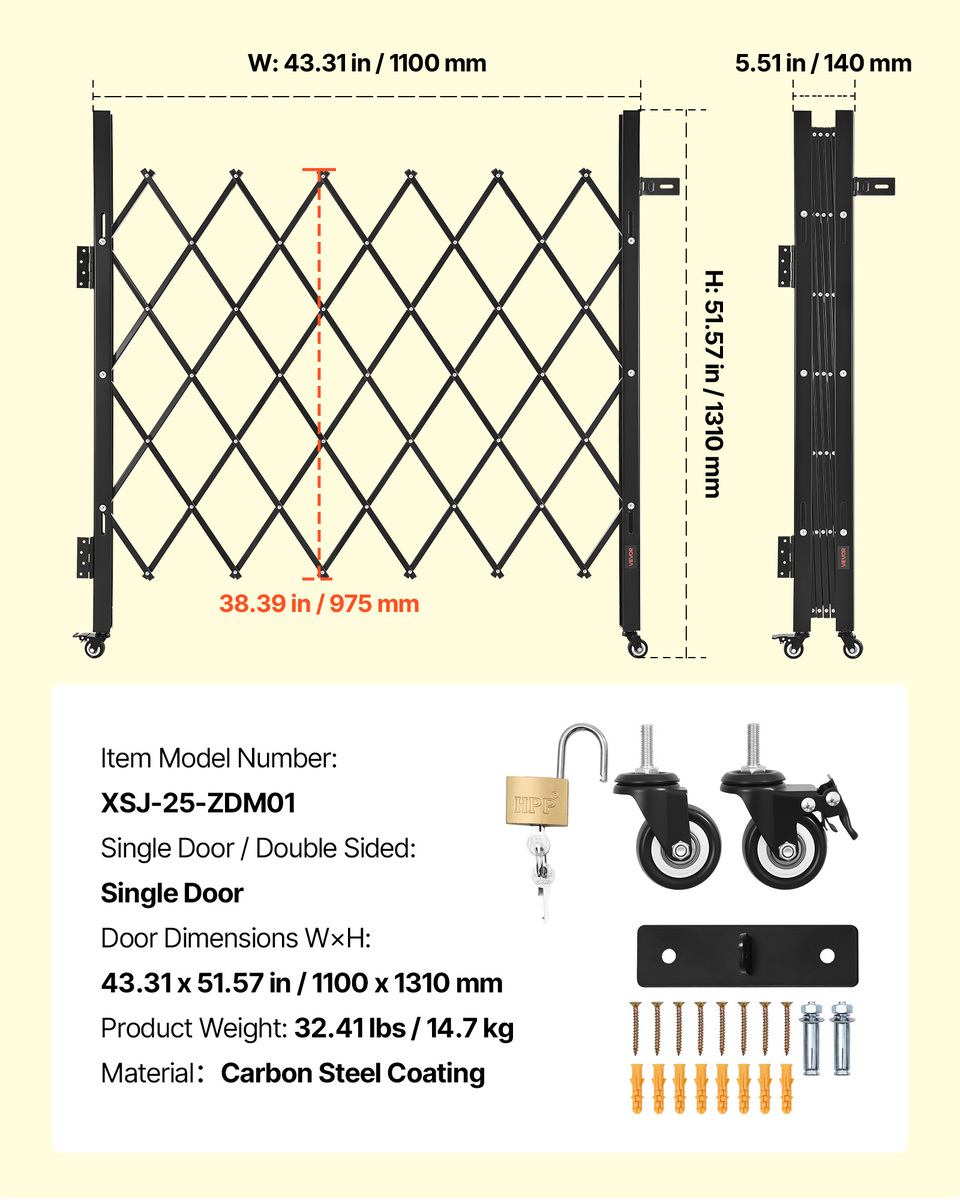 - VEVOR Single Security Gate, Lockable Scissor Gate, Steel Retractable Gates