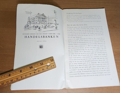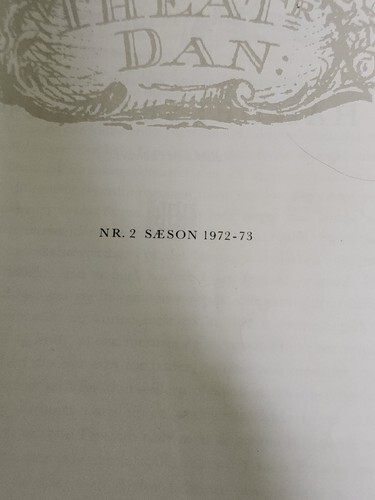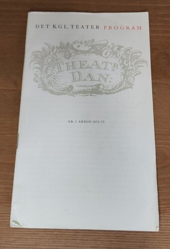 This program is for the 1972-73 season at the Royal Danish Theatre in Copenhagen, Denmark. Program features great real photos of the cast members, a synopsis of the play and several great Danish ads inside and on the back cover- All written in Danish- Program has only light wear consistent with age and normal use