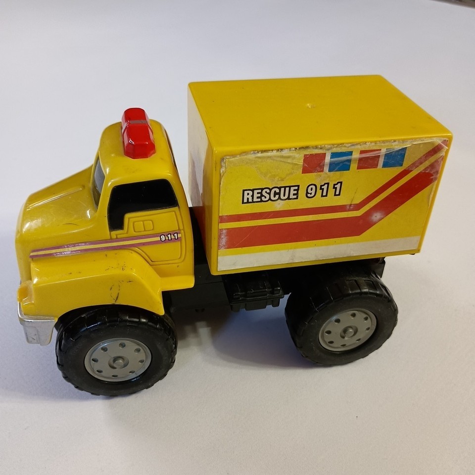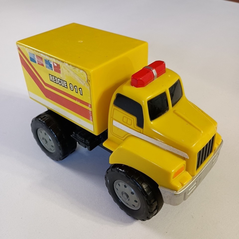 - VINTAGE Big Yellow Plastic Rescue Truck Makes Noises When Rolled