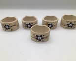- VINTAGE Hand Painted Stoneware Blue Floral Napkin Rings Set of 5 Rustic Pottery