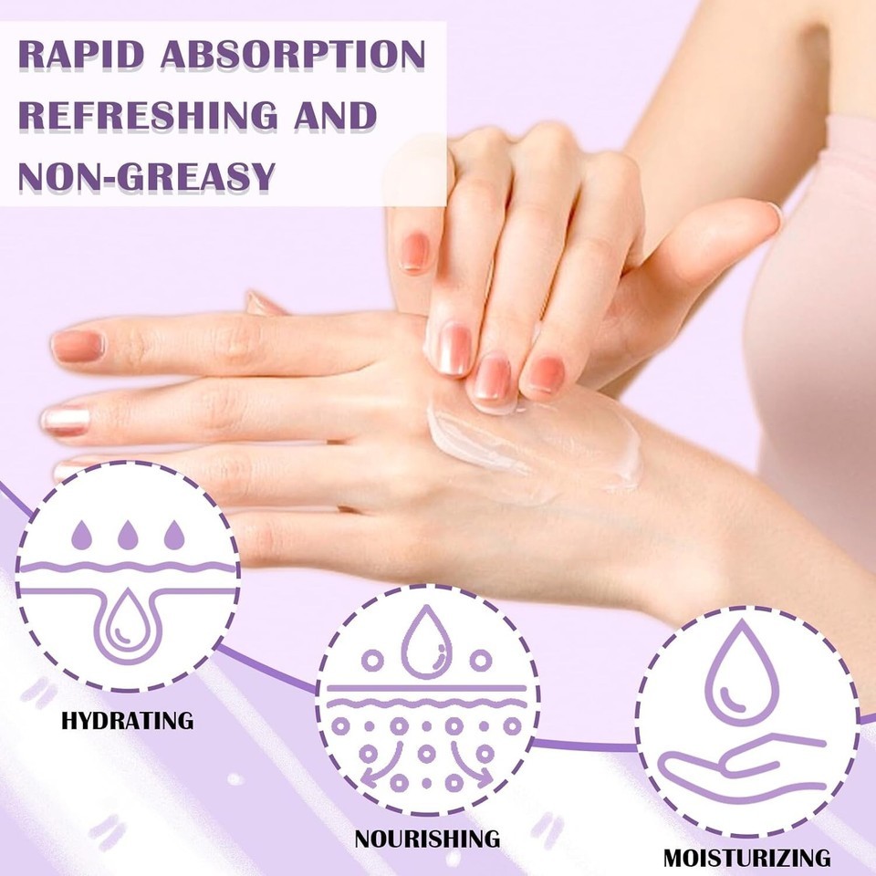 ??Suitable for Various Skin Types?Natural plant essences,No irritating ingredients,it is very gentle and nourishing,Non-greasy,can be quickly absorbed by hand skin,deep hydration,long-lasting moisturizing,suitable for all skin types.