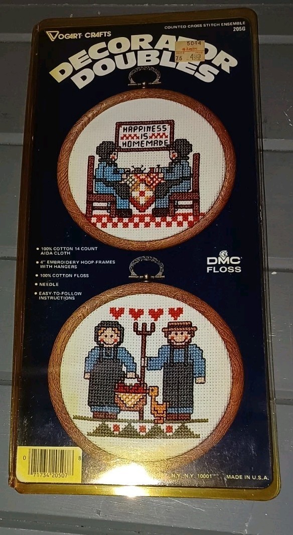 - VOGART Decorator Doubles Counted Cross Stitch AMISH Happiness 4' Round w Hoops