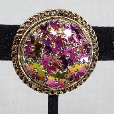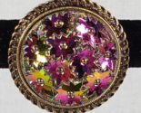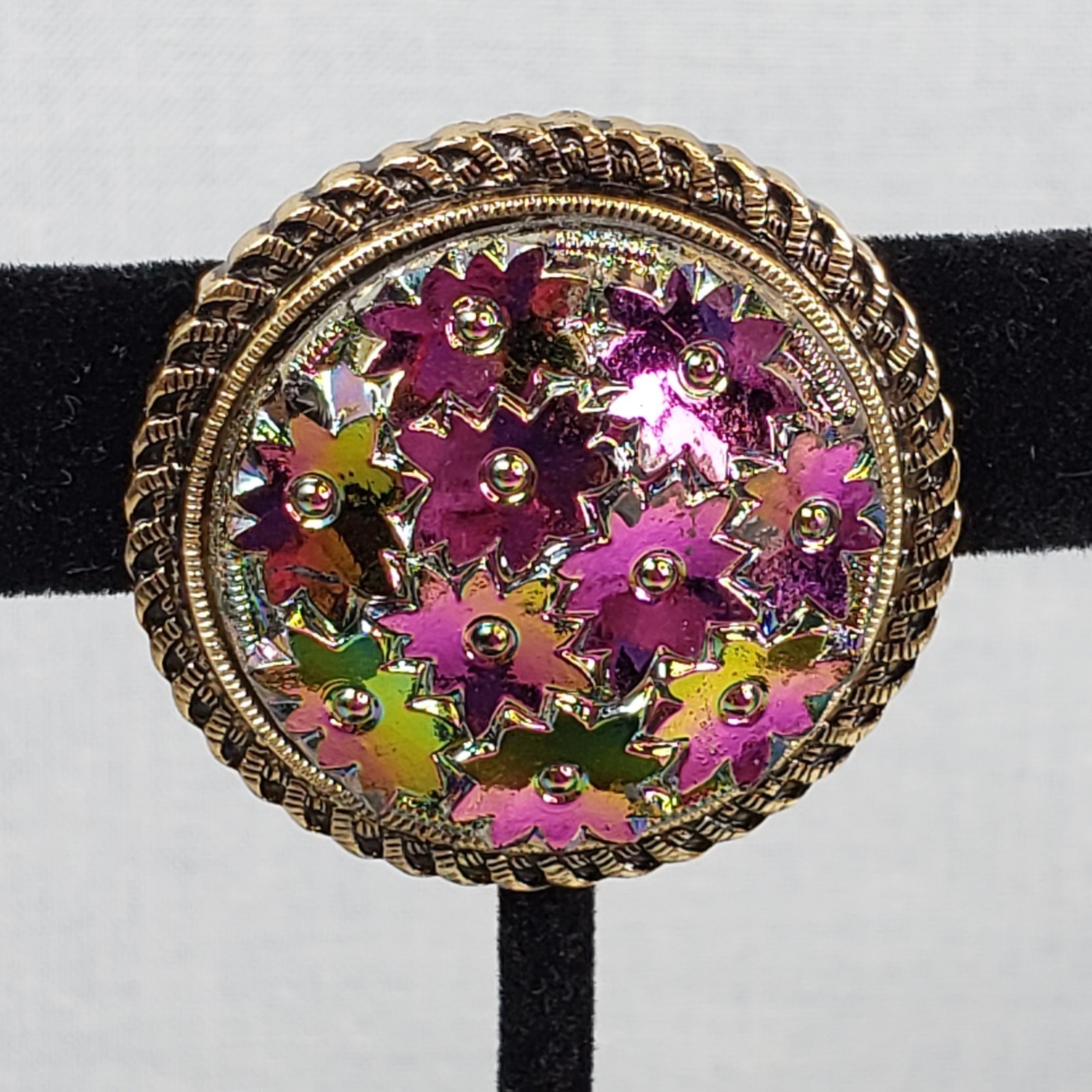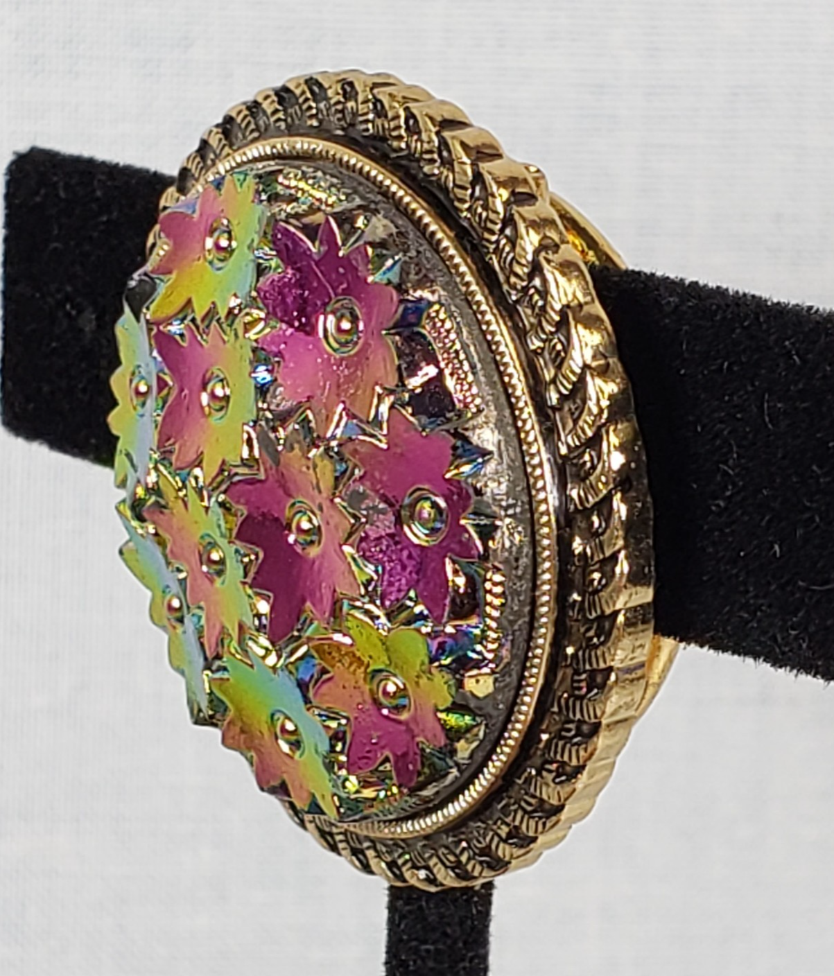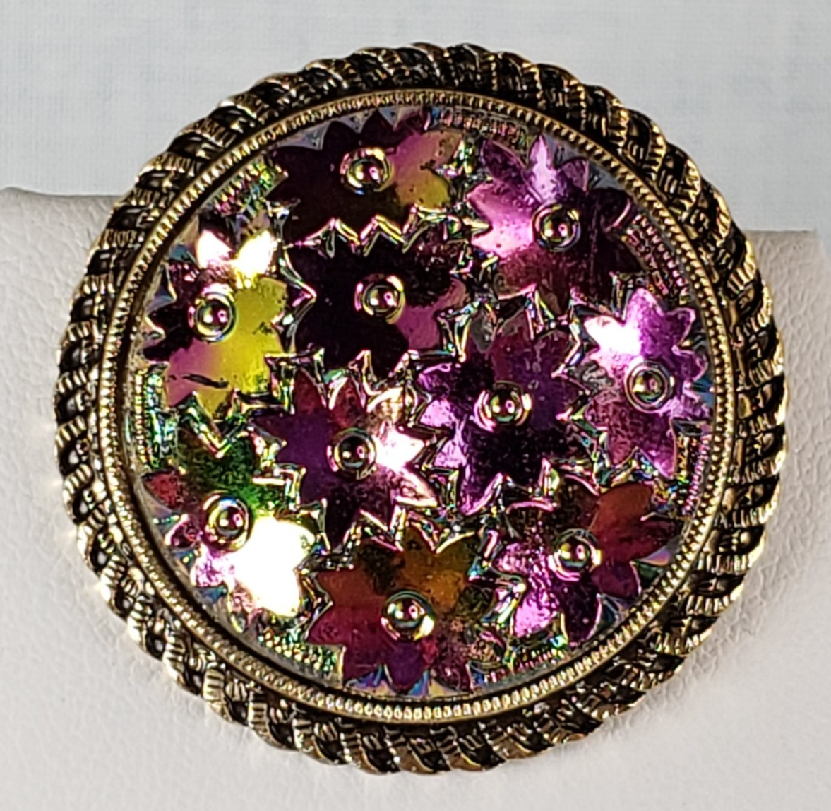 1940s Western Germany Iridescent Domed Scarf Clip 1.5? Rainbow Glass Flowers
