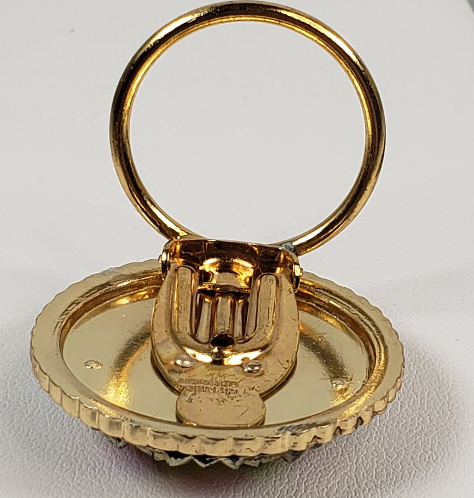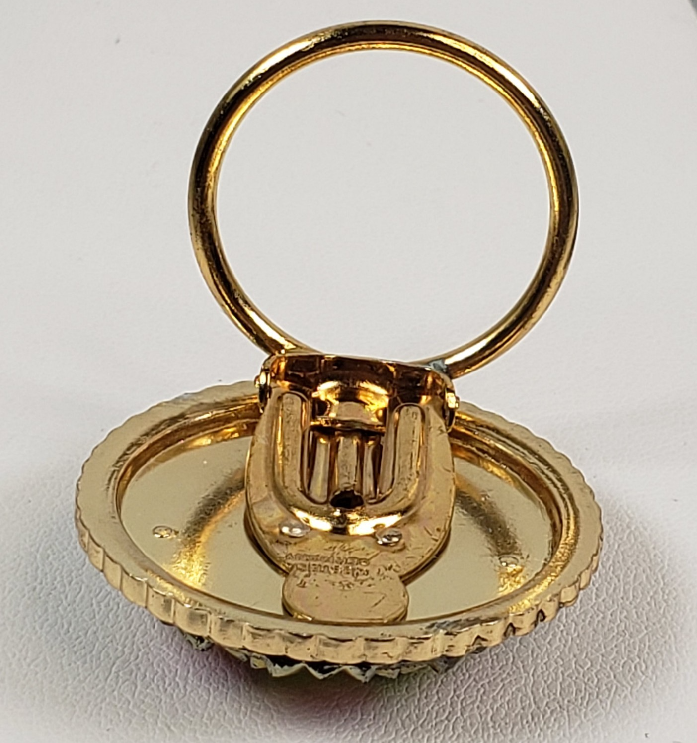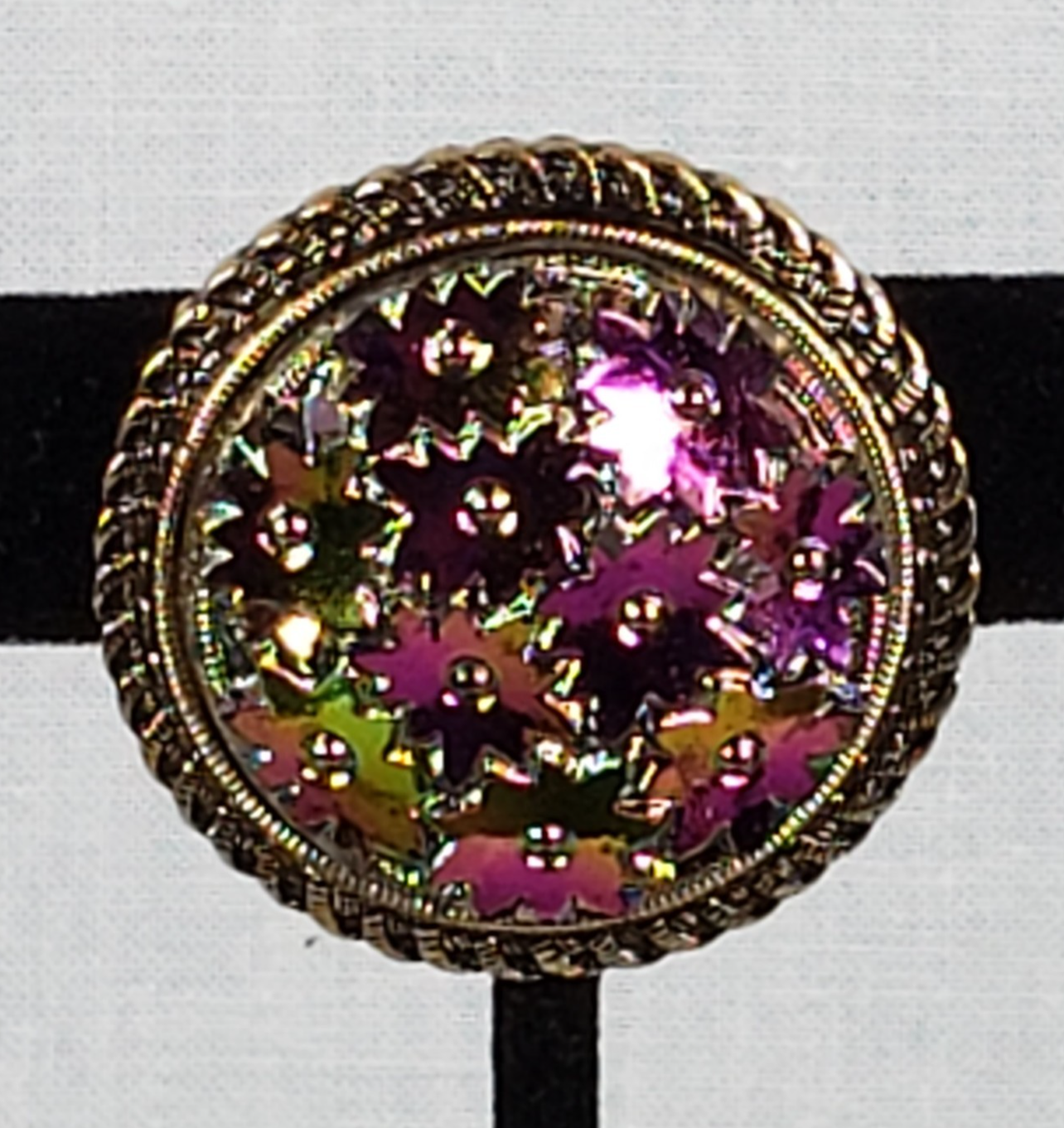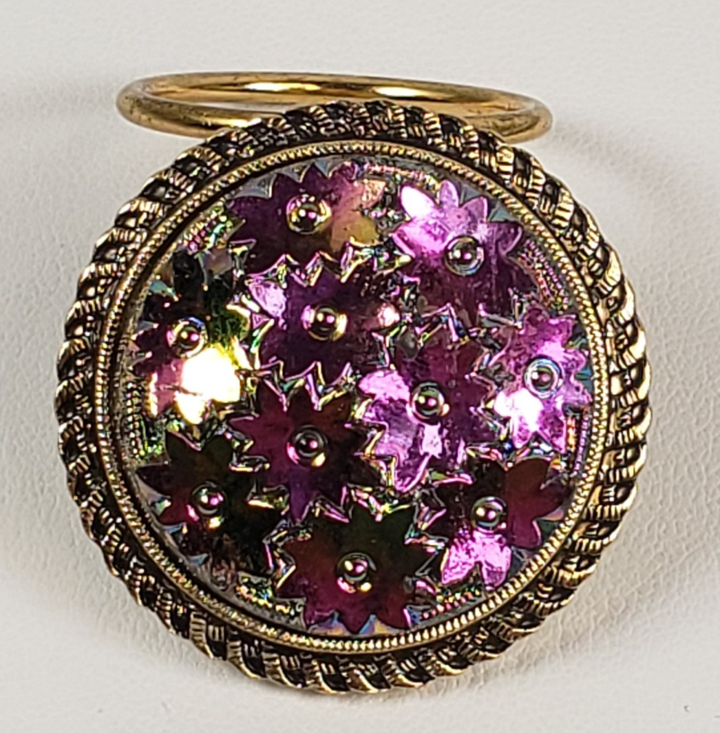 1940s Western Germany Iridescent Domed Scarf Clip 1.5? Rainbow Glass Flowers